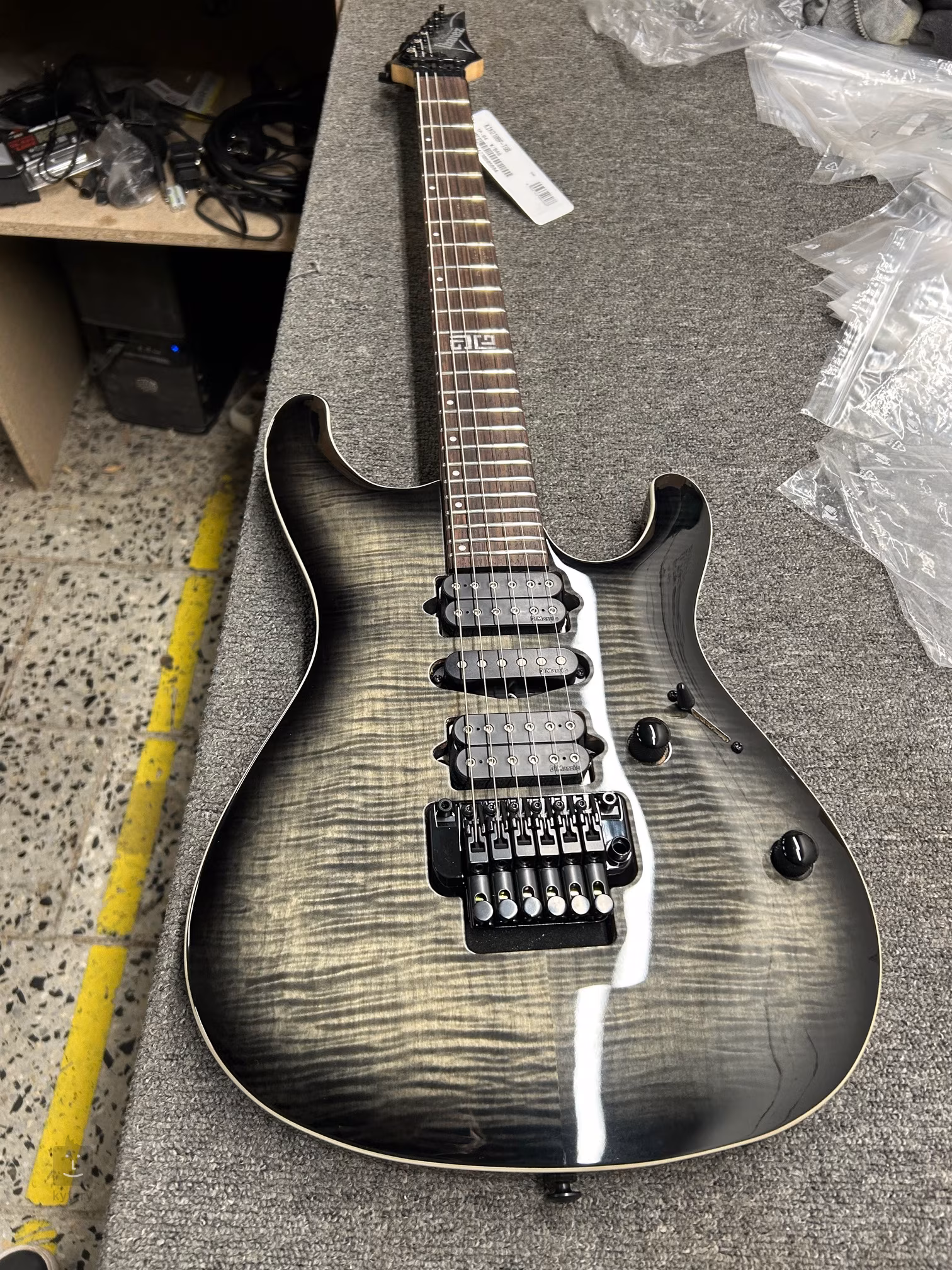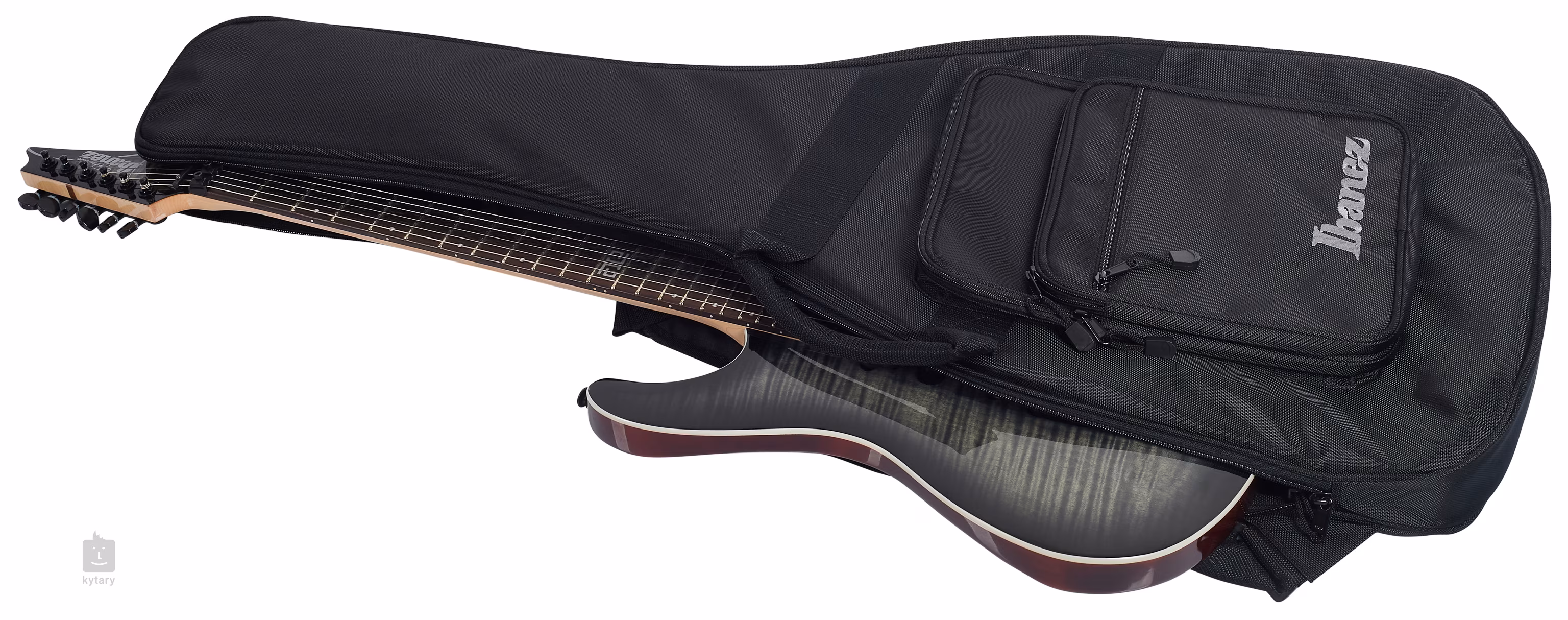 Die E-Gitarre Kiko Loureiro KIKO10BP Transparent Grey Burst aus der Ibanez Premium-Serie ist das Signature-Modell des brasilianischen Gitarristen, der durch seine Mitwirkung in den Bands Megadeth und Angra bekannt wurde. Der relativ dünne Korpus aus Erle ist mit einem Deckenfurnier aus geflammtem Ahorn verziert. Die spezielle Form des Korpus mit einer tieferen Aussparung an der Unterseite der „Ecken” ermöglicht ein besseres und angenehmeres Spielgefühl auf dem Griffbrett aus jedem Winkel. Der Hals aus fünf Stücken Ahorn und Walnuss ist mit einem Palisandergriffbrett mit vierundzwanzig Jumbo-Bünden mit abgerundeten Kanten (Premium Fret Edge Treatment) versehen. Die Orientierung auf dem Griffbrett wird durch Positionspunkte und eine markante Einlage am zwölften Bund erleichtert. Die Klangeinstellung der Gitarrensensoren, d. h. zwei Humbucker und ein Single-Coil-Sensor KIKO original der renommierten Marke DiMarzio, respektiert voll und ganz das breite Spektrum des brasilianischen Gitarristen. Im Gegensatz zu typischen Metal-Hi-Output-Humbuckern verfügen diese Humbucker über eine geringere Lautstärke und einen ausgewogenen Klang in Bezug auf die Frequenzantwort. So sind sie in der Lage, auch die feinsten Nuancen Ihres Spiels einzufangen. Der Single-Coil hingegen liefert einen lauteren und wärmeren Klang als üblich. Zur Steuerung der Tonabnehmer dienen versenkte Potentiometer für Lautstärke, Tonregelung und ein Fünf-Positionen-Schalter. Die Spulen der Humbucker-Tonabnehmer können durch Drücken der Potentiometer „getappt“ werden. Dadurch können Sie bis zu zehn verschiedene Tonabnehmerkonfigurationen auf der Gitarre einstellen. Liebhaber von Soundeffekten werden sicherlich das doppelt umkehrbare Tremolo Edge-Zero II zu schätzen wissen, das Ihr Spiel perfekt bereichert. Der entsprechende „Metal“-Look der Gitarre wird durch die gesamte Mechanik in schwarzer Ausführung unterstrichen. Die Gitarre wird in einer Tasche (Gig Bag) geliefert.
