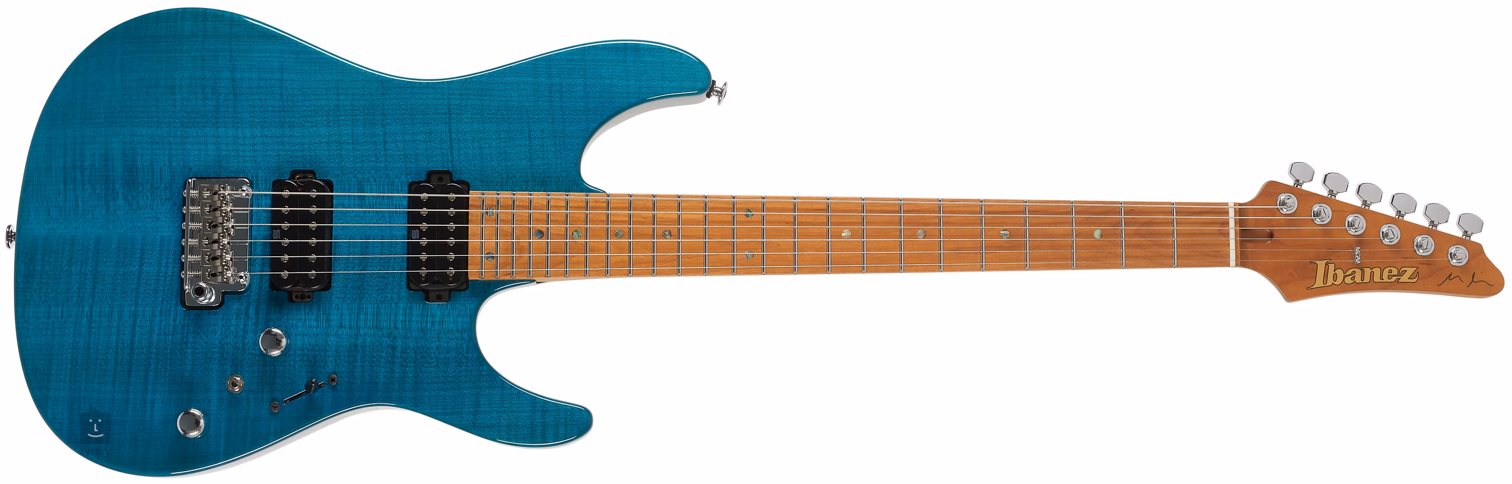 Passive Seymour Duncan Hyperion-Tonabnehmer mit Alnico-5-Magneten verleihen dem Instrument einen ausgewogenen Klang mit einem milderen Ausgangssignal. Dadurch bleiben die Klarheit des Klangs und die Dynamik des Punch auch bei High-Gain-Verzerrung erhalten. Das dyna-MIX 10 Pickup-Switching-System (Blade-Schalter mit fünf Positionen und Alter-Schalter mit zwei Positionen) bietet zehn verschiedene Anschlussmöglichkeiten für Pickups, mit denen man ganz einfach zwischen Humbucker- und Single-Coil-Pickup-Sounds im Standard- und Power-Tap-Modus wechseln kann. Die Saiten sind in einem Ibanez T1802 Single-Coil-Tremolo mit Titansätteln montiert. Die Stimmstabilität auch bei häufigem Gebrauch des Tremolohebels wird durch hochwertige Gotoh Magnum Lock Mechaniken und ein imprägniertes Knochengriffbrett gewährleistet.