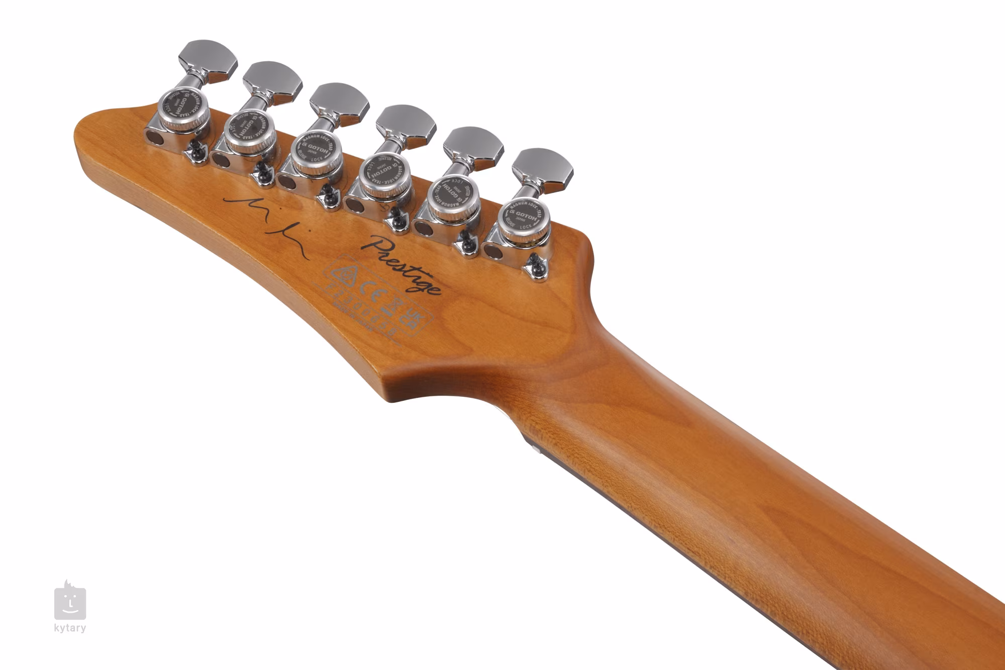 Eine stabile Stimmung wird durch die Saitenbefestigung in Gotoh MG-T Locking Mechaniken und Gotoh T1702B Tremolo garantiert. Die Gitarre wird in einem Koffer geliefert.