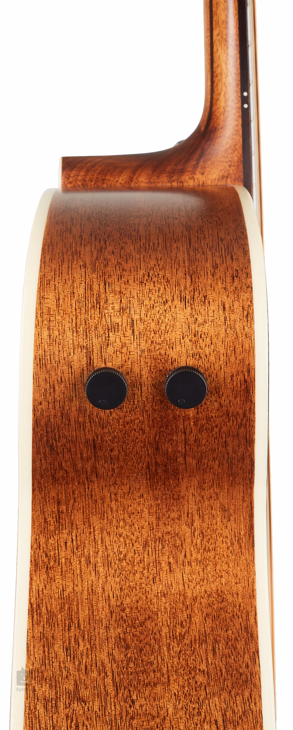 Die Vorderseite des PA230E-NSL ist aus massivem Zedernholz gefertigt, während Boden und Zargen aus Okoumé-Sperrholz bestehen. Auf den fünfteiligen Hals aus afrikanischem Mahagoni und Pau Ferro ist ein Makasar-Griffbrett aus Ebenholz geklebt, das mit zwanzig Jumbo-Bünden ausgestattet ist. Die gute Resonanz des Instruments wird durch eine modifizierte, reduzierte X-M Riffelung unterstützt, die die Saitenschwingungen optimal auf den Korpus überträgt.