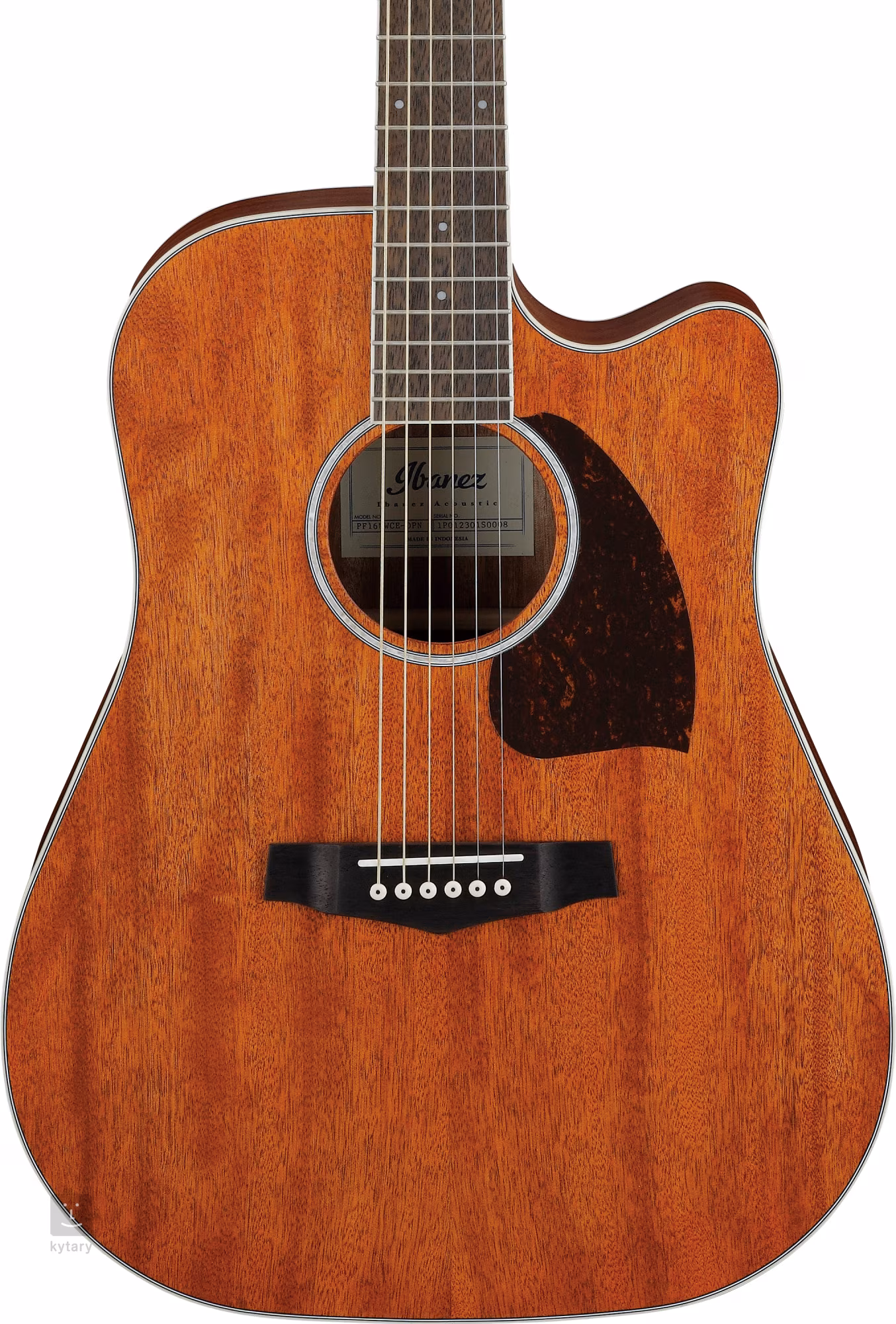 Die PF16MWCE-OPN ist eine elektroakustische Gitarre mit einem großen, resonanten Dreadnought-Korpus. Der Korpus der Gitarre ist aus laminiertem Okoumé gefertigt. Der Hals ist aus Nyatoh-Holz und das Griffbrett ist aus Feigenholz mit 20 Bünden. Das breitere Griffbrett wird Spielern mit längeren Fingern oder Musikern, die es gewohnt sind, klassische Gitarre zu spielen, gefallen, während die Anpassung in höheren Lagen durch den niedrigeren Korpusausschnitt erleichtert wird.