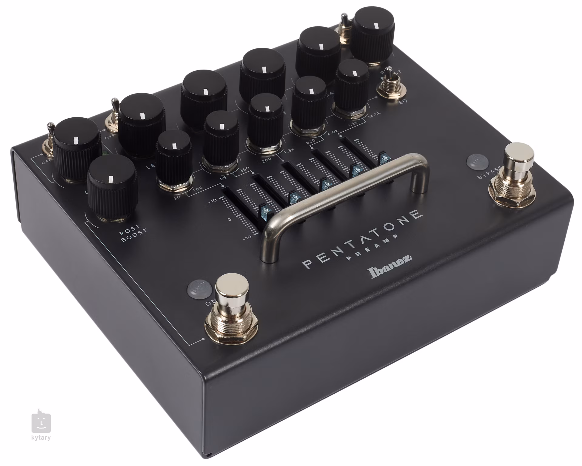 PTPRE (Pentatone Preamp) ist ein Gitarrenvorverstärker in Form eines analogen Pedaleffekts. Er bietet fünf separate Sektionen, in denen Sie die Form des Sounds gestalten können - Pre Boost (hebt den Gain/Distortion-Bereich an), Distortion mit einem Zweiband-EQ und Bright-Schalter, Noise Gate, ein parametrischer Fünfband-EQ und Post Boost (hebt den Gesamtsignalpegel an). Mit den beiden Fußschaltern des Pedals lassen sich der Preamp-Bypass und die Post-Boost-Funktion (ein/aus) steuern. Über die Remote-Buchse kann ein externer Ibanez IFS2L-Fußschalter an den Preamp angeschlossen werden (Fußschalter nicht im Lieferumfang enthalten), um die Pre-Boost- und 5-Band-EQ-Sektion zu steuern/aktivieren.