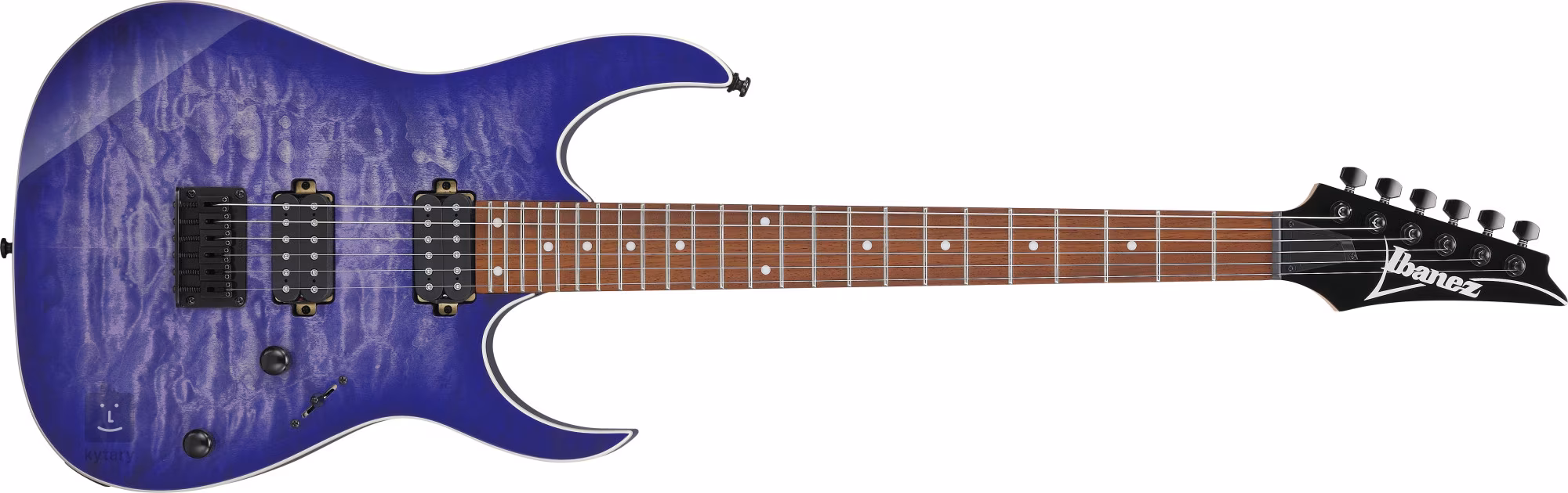 Die E-Gitarren der RG-Serie der japanischen Marke Ibanez gehören zu den bekanntesten Instrumenten dieser Art. Ihr flacher, schneller Hals, ihr geringeres Gewicht und ihre markanten Ausschnitte mit stilvollen spitzen Ecken sind der Grund für ihre außerordentliche Beliebtheit bei Rock- und Metal-Gitarristen. Der Korpus der RG421QM Cerulean Blue Burst aus Meranti-Holz ist mit einem Deckenfurnier aus Riegelahorn verziert. Der schnelle Ahornhals mit Wizard III-Profil ist mit einem Jatoba-Griffbrett mit 24 Jumbo-Bünden versehen. Weiße Positionspunkte erleichtern die Orientierung auf dem Griffbrett. Zwei passive Quantum-Humbucker mit Keramikmagneten verleihen der Gitarre einen ausgewogenen Klang mit schneller Ansprache in den Bässen und durchdringenden Mitten, was Sie beim schnelleren „Riffing“ zu schätzen wissen werden. Zur Standardausstattung gehören Potentiometer für Lautstärke und Klang sowie ein Fünf-Wege-Tonabnehmerwahlschalter, der neben den üblichen Konfigurationen auch eine Parallelschaltung des Hals-Humbuckers in Position 2 und den Klang der inneren Spulen beider Tonabnehmer in Position 4, d. h. Single-Coil-Charakter, bietet. Eine stabile Stimmung wird durch die Befestigung der Saiten in den firmeneigenen Stimmmechaniken und durch den festen Steg F106 durch den Korpus gewährleistet. Die E-Gitarren mit der Bezeichnung Standard gehören zu den Basisreihen der Marke Ibanez. Es handelt sich um preisgünstigere Instrumente, die durch ihre hochwertige Verarbeitung, ihren Klang und ihre Spieleigenschaften sowohl Anfänger als auch erfahrene Spieler ansprechen.