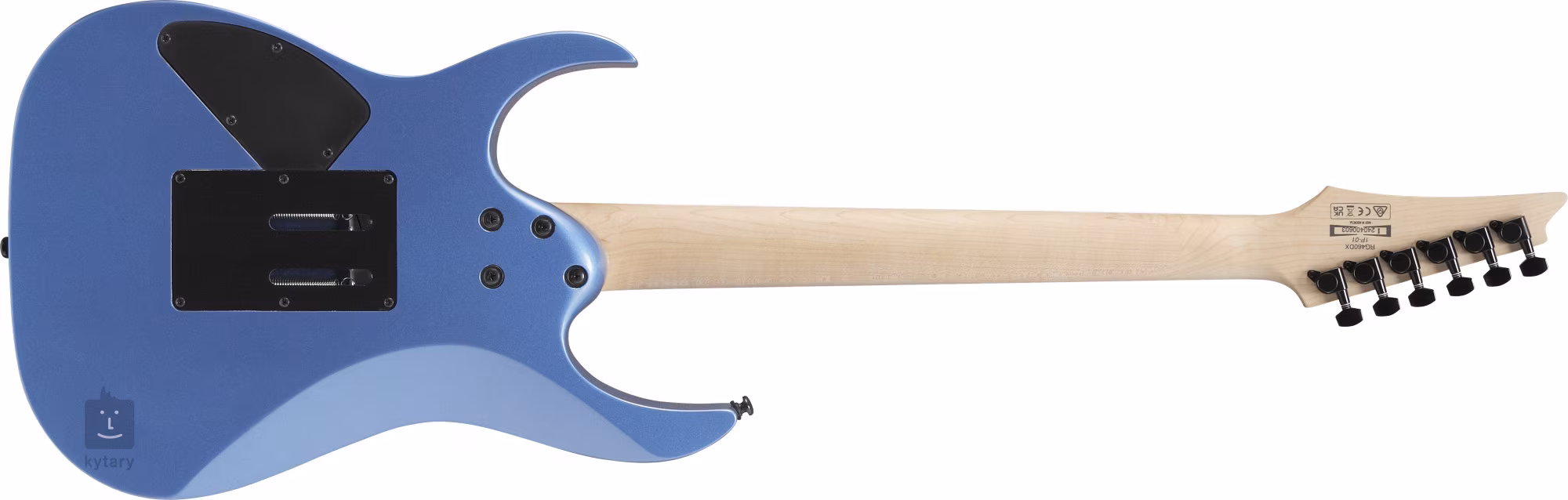 Der Korpus der RG460DX-BLH ist aus Meranti-Holz gefertigt. Der schnelle Ahornhals mit Wizard-III-Profil ist auf ein Jatoba-Griffbrett geleimt, das mit vierundzwanzig Jumbo-Bünden bestückt ist. Positionsmarker im Haifischzahn-Design erleichtern die Orientierung auf dem Griffbrett.