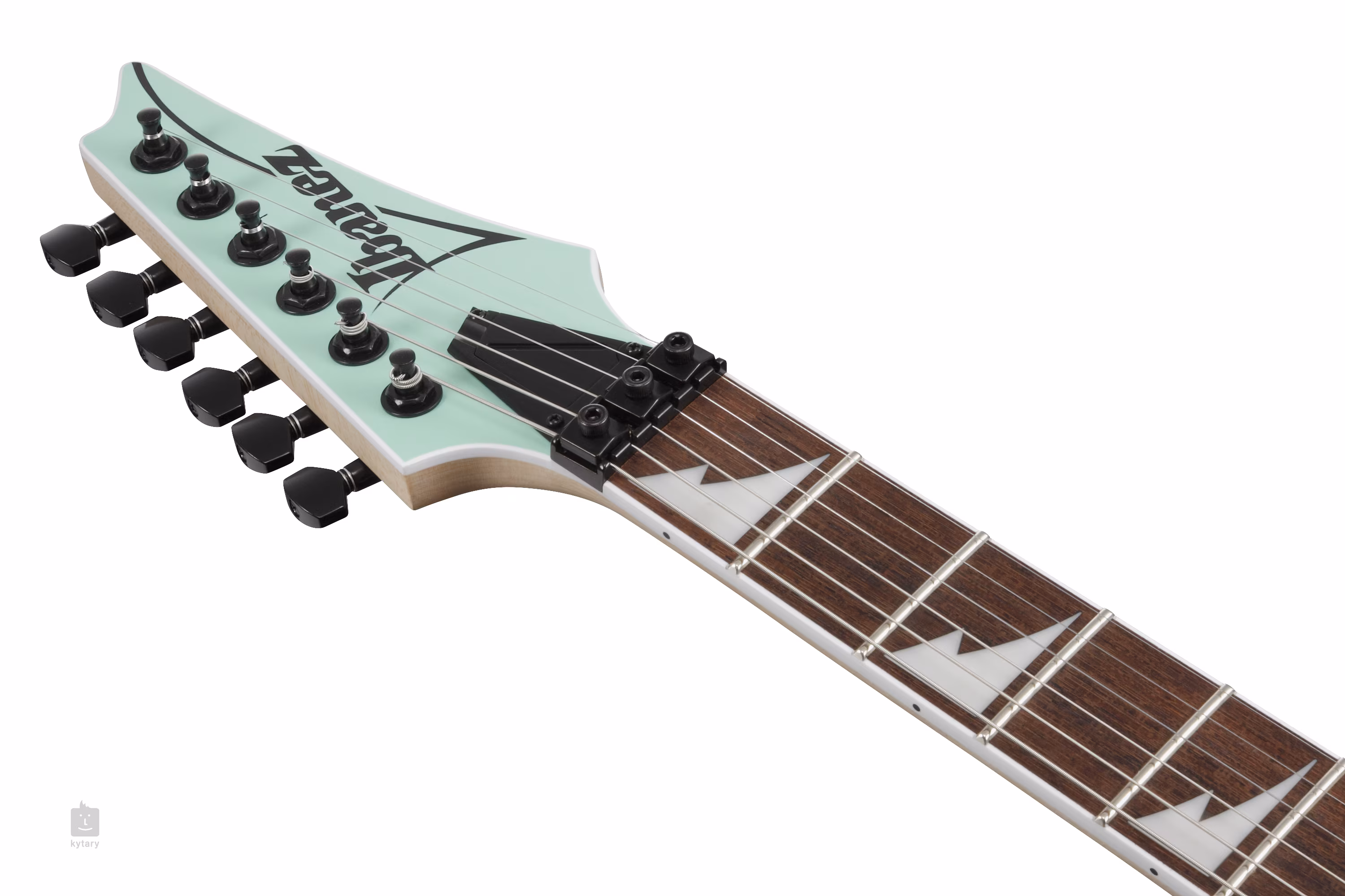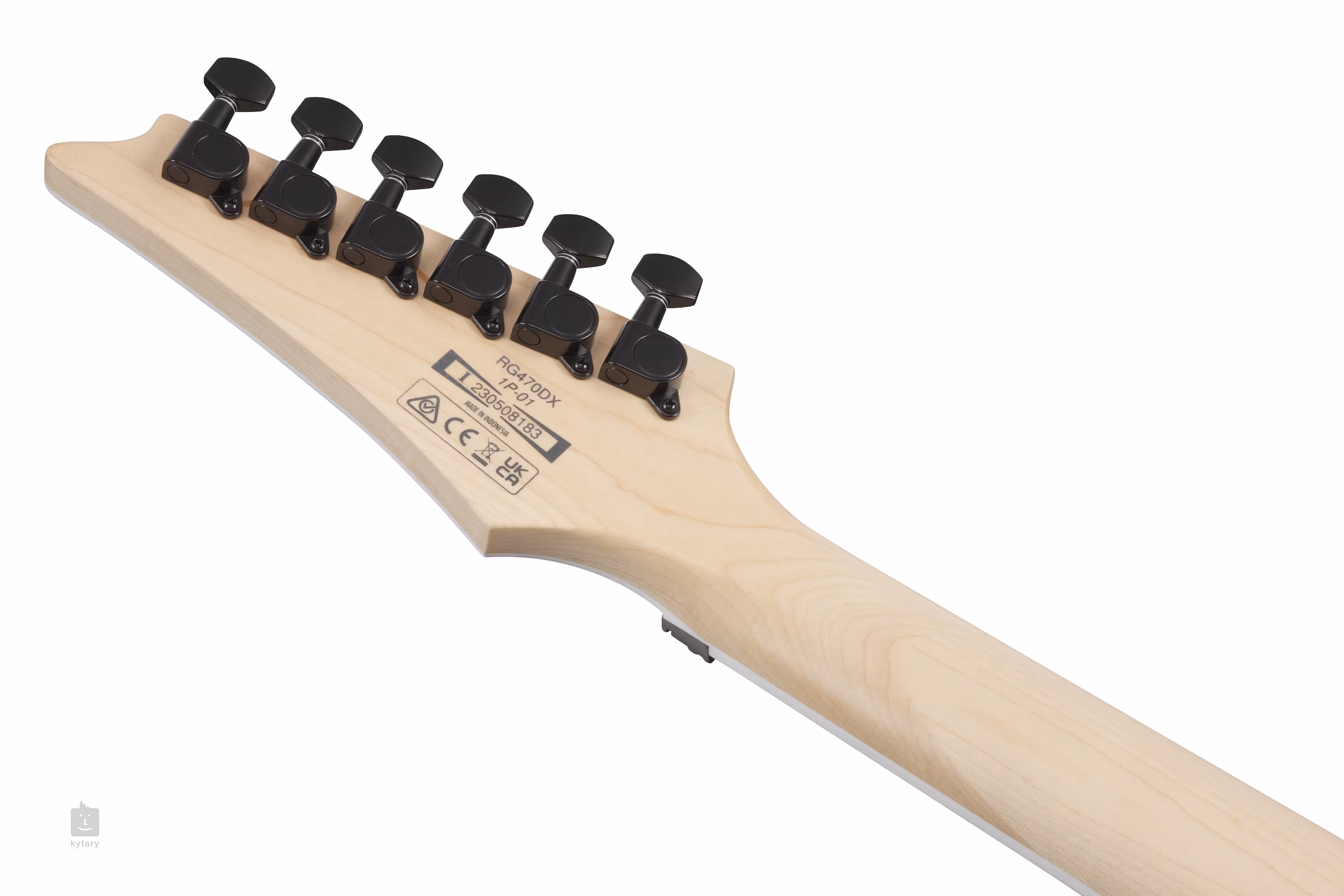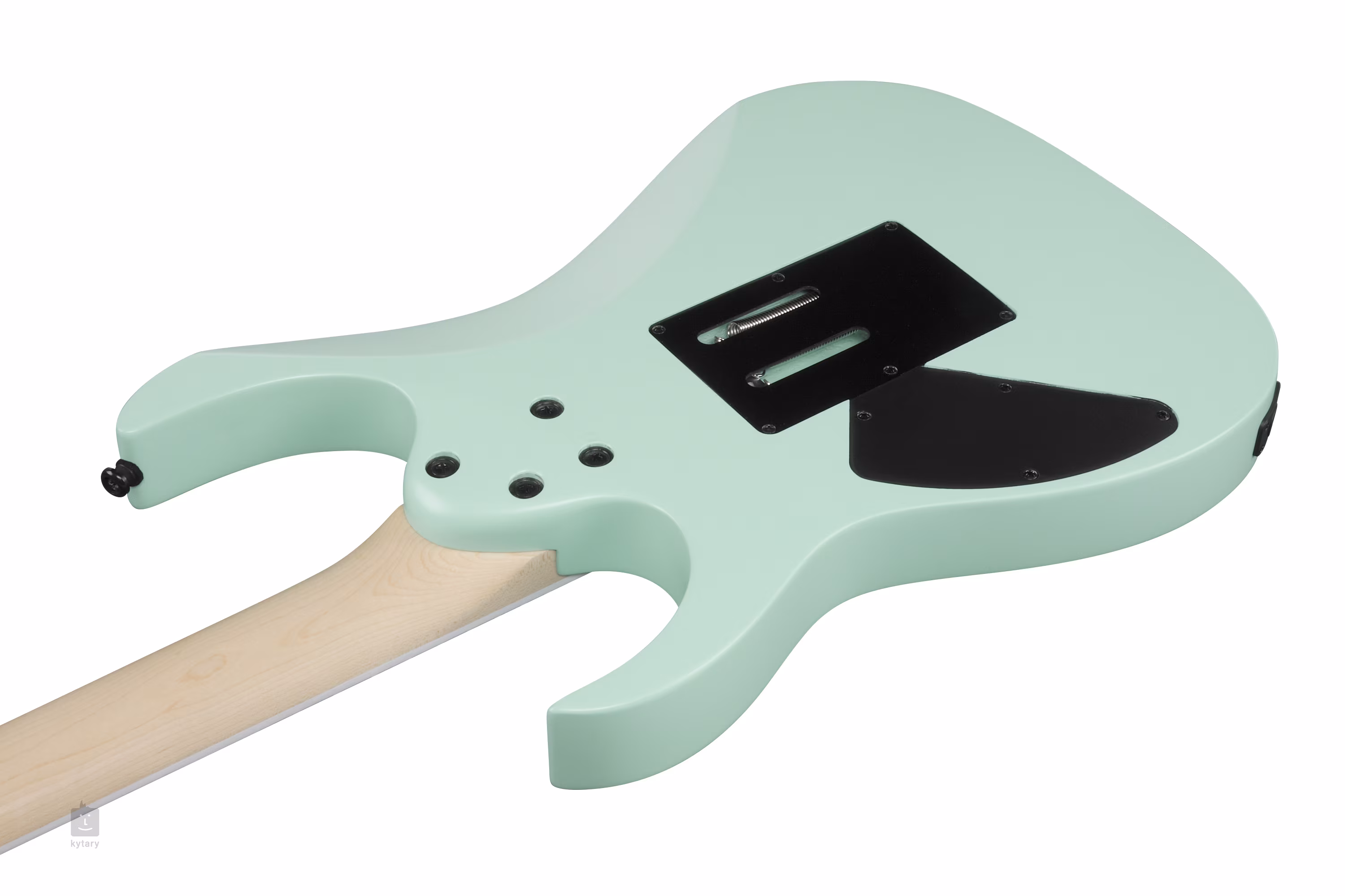Der Korpus der RG470DX-SFM ist aus Meranti gefertigt. Der schnelle Ahornhals mit Wizard III-Profil ist auf ein Jatoba-Griffbrett mit vierundzwanzig Jumbo-Bünden geleimt. Positionsmarkierungen im Sharktooth-Design erleichtern die Orientierung auf dem Griffbrett.