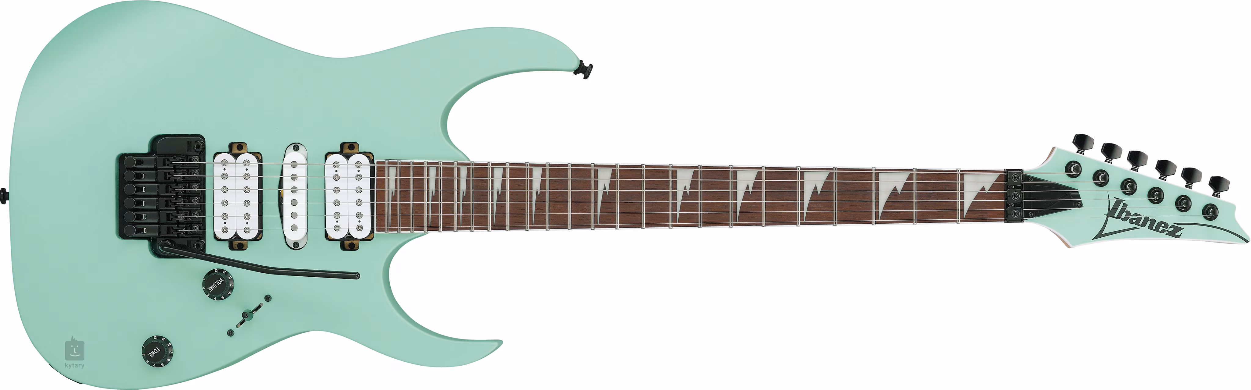 E-Gitarren aus der RG-Serie der japanischen Marke Ibanez gehören zu den bekanntesten Instrumenten dieser Art. Ihr flacherer, schnellerer Hals, das geringere Gewicht und die markanten Cutouts mit stilvoll zugespitzten Hörnern für eine leichte Bewegung über das gesamte Griffbrett sind die Gründe für ihre extreme Beliebtheit bei Rock- und Metal-Gitarristen.