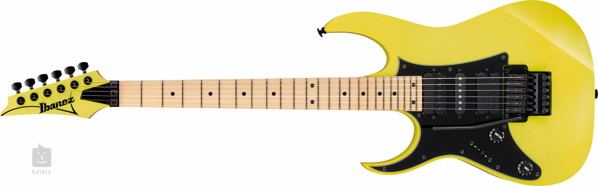 Der Korpus der RG550L-DY Linkshänder-E-Gitarre ist aus Linde gefertigt. Ein fünfteiliger Hals aus Ahorn und Walnuss ist auf ein Ahorn-Griffbrett mit vierundzwanzig Jumbo-Bünden geleimt. Das flache Profil des Super Wizard HP Halses ist ideal für schnelles Shredden. Die Orientierung auf dem Griffbrett wird durch schwarze Positionspunkte erleichtert.