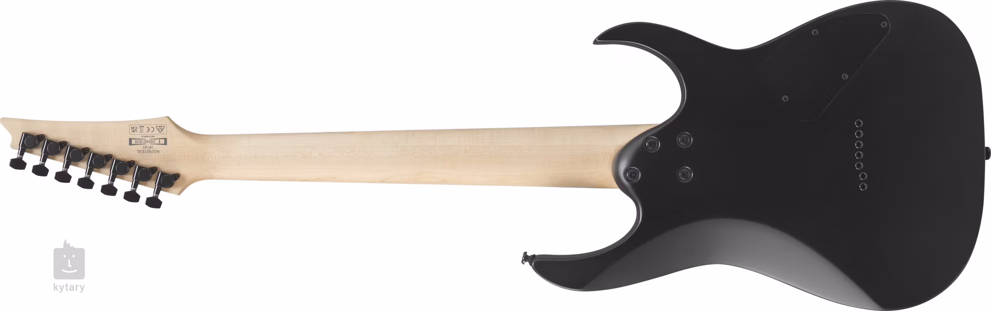 Der Korpus der siebensaitigen Linkshänder-Gitarre RG7421EXL-BKF ist aus Meranti-Holz gefertigt. Der schnelle Ahornhals mit Wizard II-7-Profil ist auf ein Jatoba-Griffbrett mit vierundzwanzig Jumbo-Bünden geleimt. Weiße Positionspunkte auf dem Griffbrett erleichtern die Orientierung.