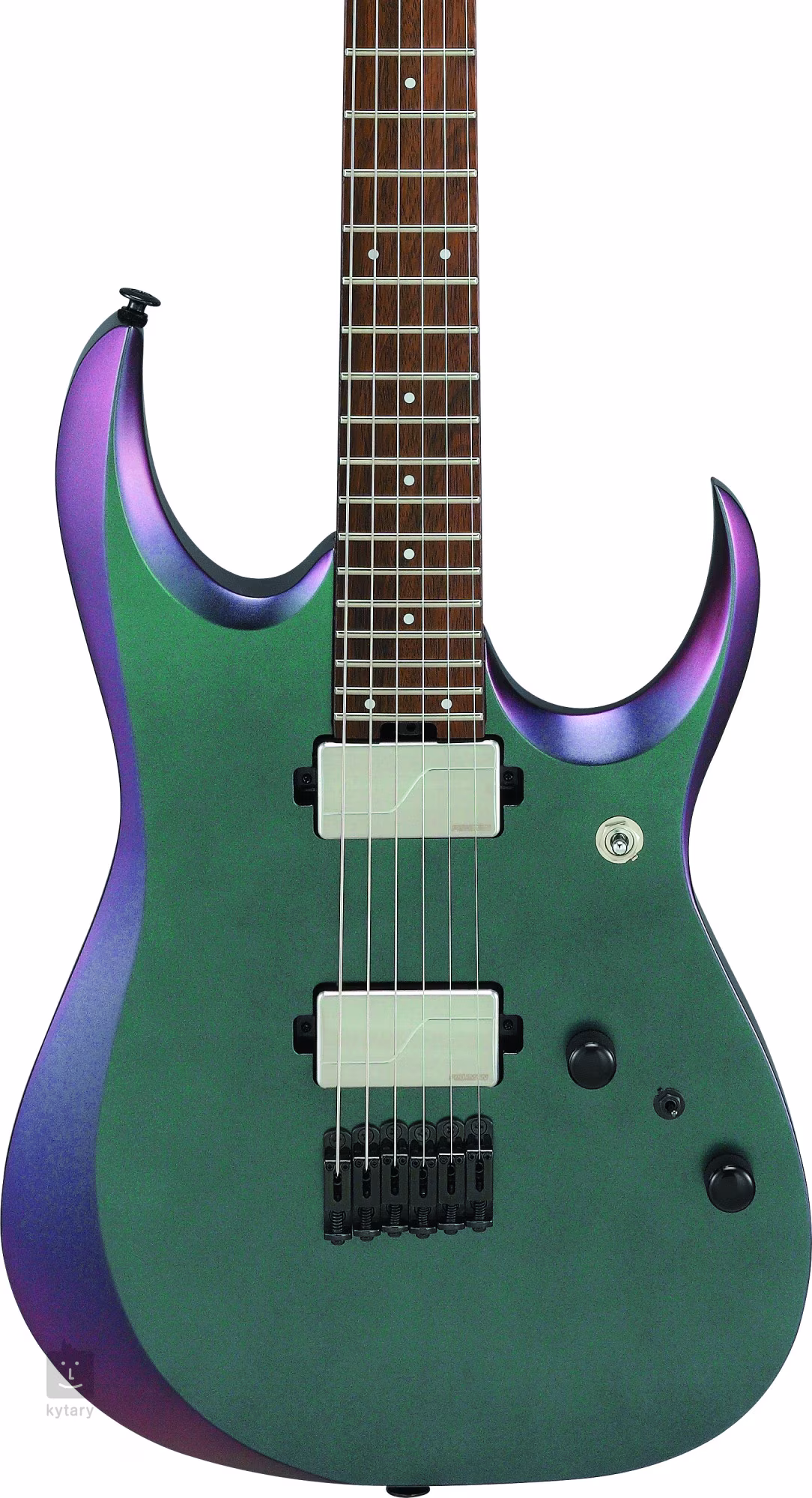 Der Lindenkorpus der RGD3121-PRF Baritongitarre ist mit einer spektakulären Polar Lights Flat-Lackierung versehen. Ein fünfteiliger Hals aus Ahorn und Wenge ist mit einem Griffbrett aus Makassar-Ebenholz verbunden, das mit vierundzwanzig Jumbo-Bünden ausgestattet ist. Die Prestige-Bundkantenbehandlung sorgt für optimalen Spielkomfort, und die Leuchtpunkte auf dem Griffbrett erleichtern die Orientierung auch in dunkler, beleuchteter Umgebung.