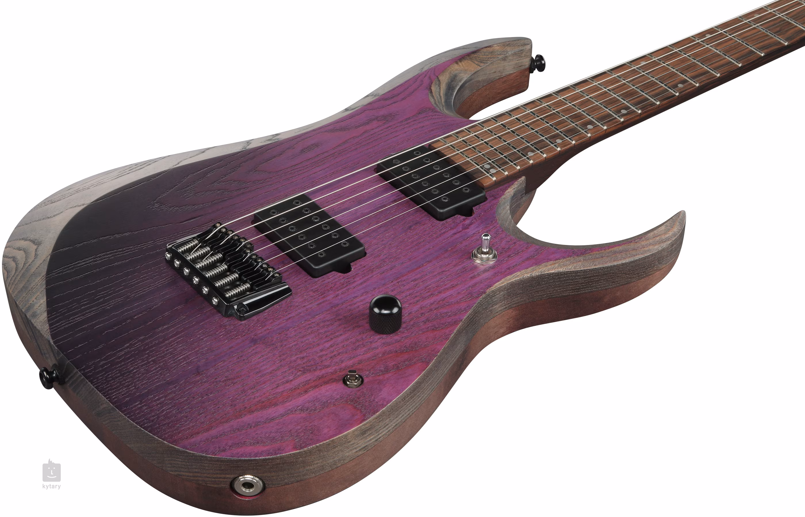 Der Korpus der E-Gitarre RGD621AH-MNF aus Okoumé ist mit einer Esche-Decke und einer Midnight Shade Flat-Lackierung versehen. Der verschraubte Hals aus fünf Stücken Walnuss und Pangapanga mit schnellem Wizard III-Profil ist mit einem Griffbrett aus Makassar-Ebenholz mit 24 Jumbo-Bünden versehen. Dank der längeren Mensur (673 mm) kommt die Gitarre sowohl mit Standard-Tiefstimmung als auch mit Drop-Stimmung mühelos zurecht. Die Orientierung auf dem Griffbrett erleichtern versetzte Positionspunkte und lumineszierende Punkte an der Seite.