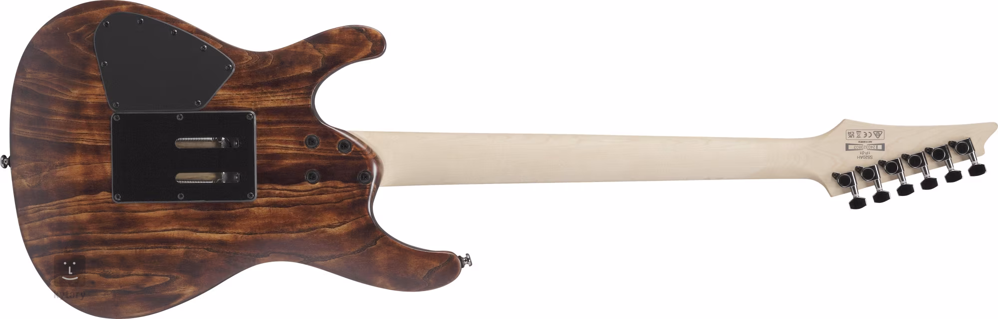 Der Korpus der S520AH Antique Brown Stained ist aus Esche gefertigt. Ein Palisander-Griffbrett mit vierundzwanzig Jumbo-Bünden ist auf einen verschraubten Ahornhals geleimt. Das dünne und schmale Profil des "Wizard III"-Halses bietet eine ideale Plattform für schnelle Spieler. Weiße Offset-Marker auf dem Griffbrett erleichtern die Orientierung.
