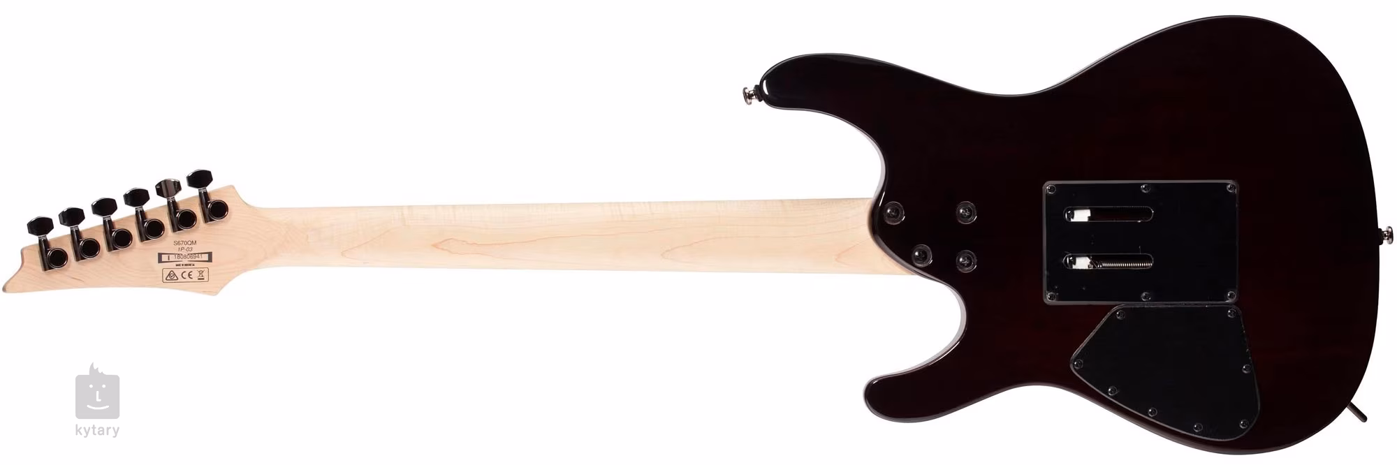 Der Meranti-Korpus der S670QM-DEB ist mit einer ausgefallenen Puff Maple-Decke und Dragon Eye Burst-Lackierung verziert. Der Ahornhals ist mit einem Palisandergriffbrett mit vierundzwanzig Jumbo-Bünden verleimt. Das dünne und schmale Profil des "Wizard III"-Halses bietet eine ideale Plattform für schnelle Spieler. Weiße Offset-Marker auf dem Griffbrett erleichtern die Orientierung.