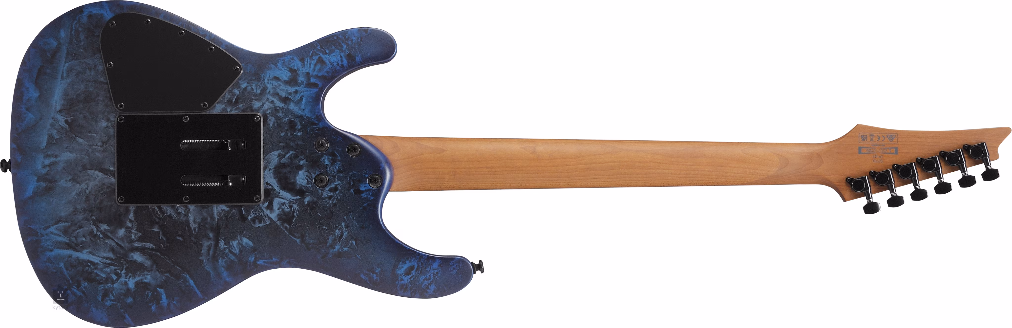 Der Korpus der S770-CZM ist aus Nyatoh-Holz gefertigt. Ein gerösteter Ahornhals mit einem Wizard III Profil ist auf ein Palisandergriffbrett mit vierundzwanzig Jumbo-Bünden geklebt. Weiße Offset-Punkte auf der Griffbrettoberfläche erleichtern die Orientierung.