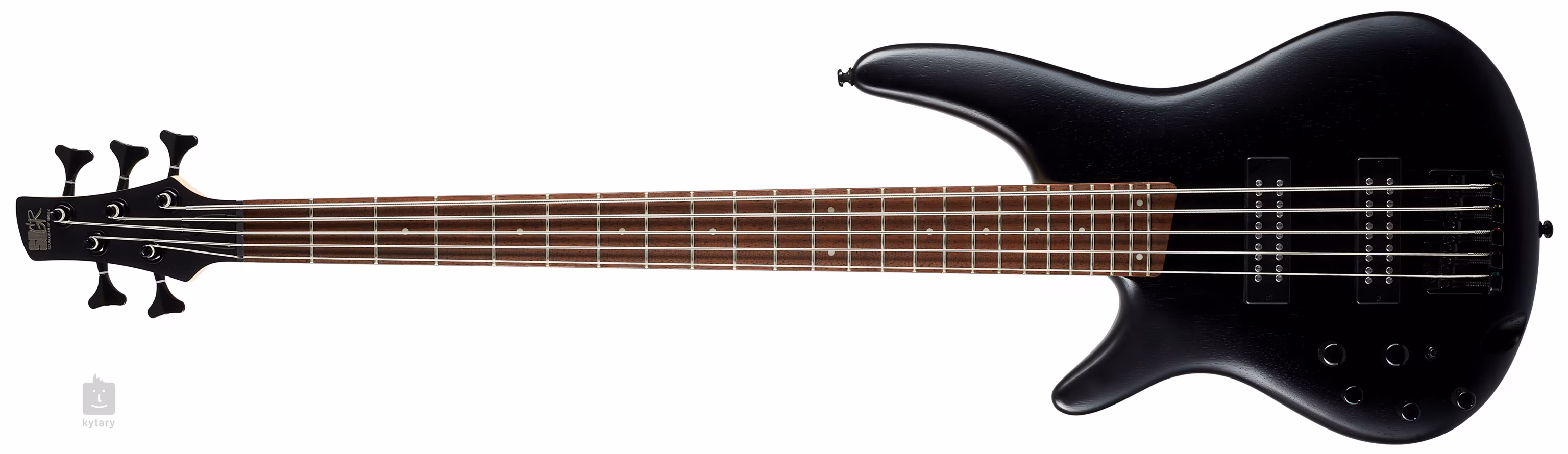 Die Hardware ist in Cosmo Black gehalten, und die Saiten sind in einer massiven Kopfplatte mit extragroßen Löchern montiert, die selbst die dicksten Saiten aufnehmen können. Die Steine in der Kopfplatte sind außerdem gegen seitliche Bewegungen geschützt. Präzisionsstimmmechanismen mit großen Pins ermöglichen ein komfortables Stimmen.
