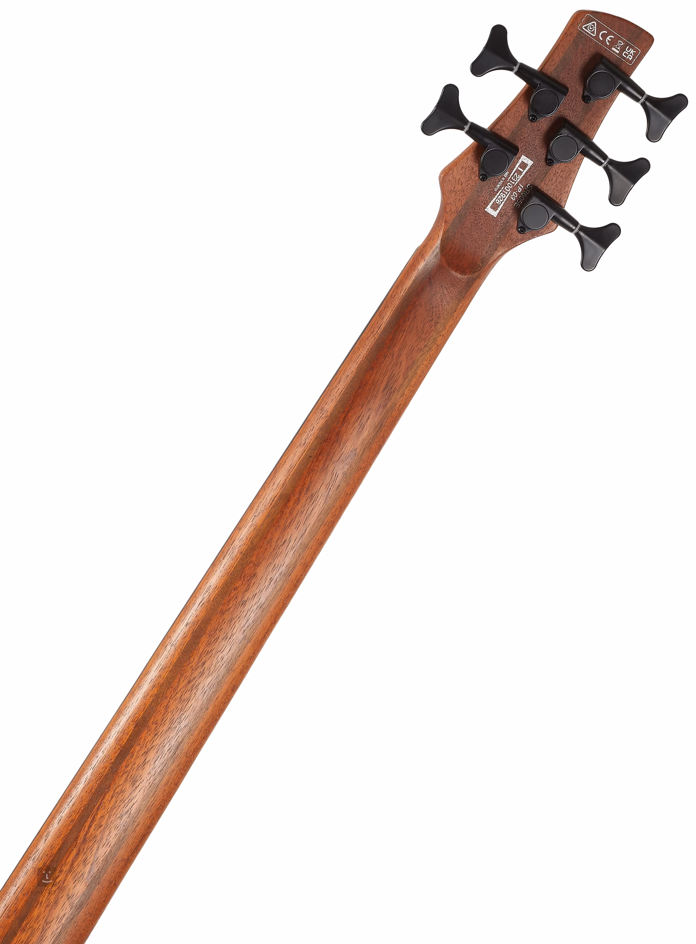 Der Korpus dieses Basses ist aus bewährtem Eschenholz gefertigt, an den ein Hals aus fünf Stücken Jatoba und Walnuss geschraubt ist. Das Griffbrett ist ebenfalls aus Jatoba gefertigt und verfügt über 24 mittelgroße Bünde.