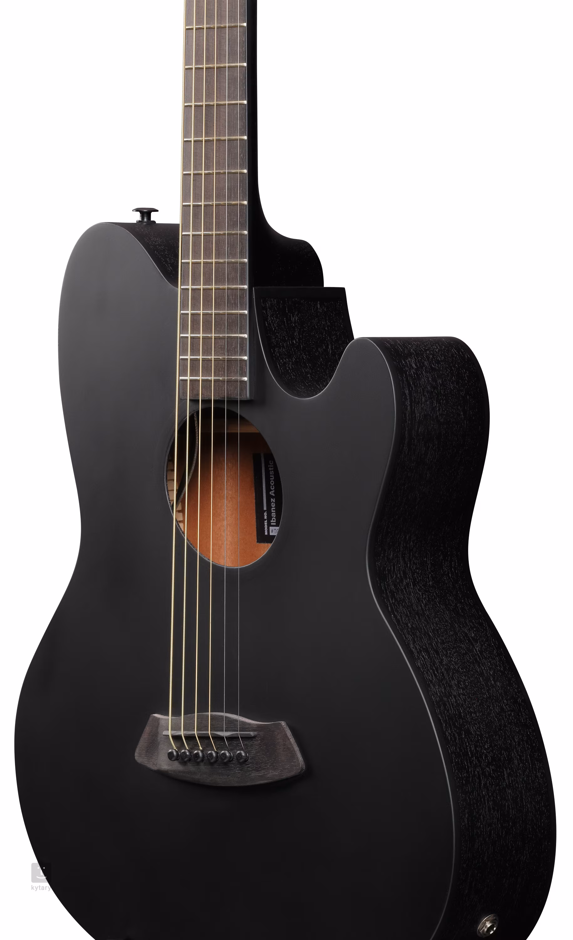 Die Vorderseite der TCY621-BOT besteht aus laminierter Fichte, während die Zargen und der Boden aus laminiertem Sapele gefertigt sind. Der Korpus ist mit schwarzem Polyurethan-Lack überzogen. Auf den Okoumé-Hals ist ein Griffbrett aus Purpurherz/Amarantholz mit 20 Bünden geleimt.