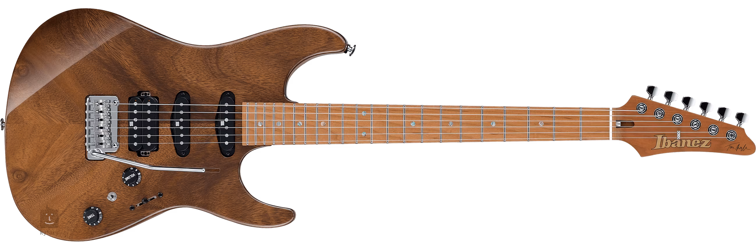 Diese E-Gitarre der japanischen Marke Ibanez ist das Signature-Modell des britischen Gitarristen Tom Quayle, eines bekannten Vertreters der Jazz/Rock-Fusion.