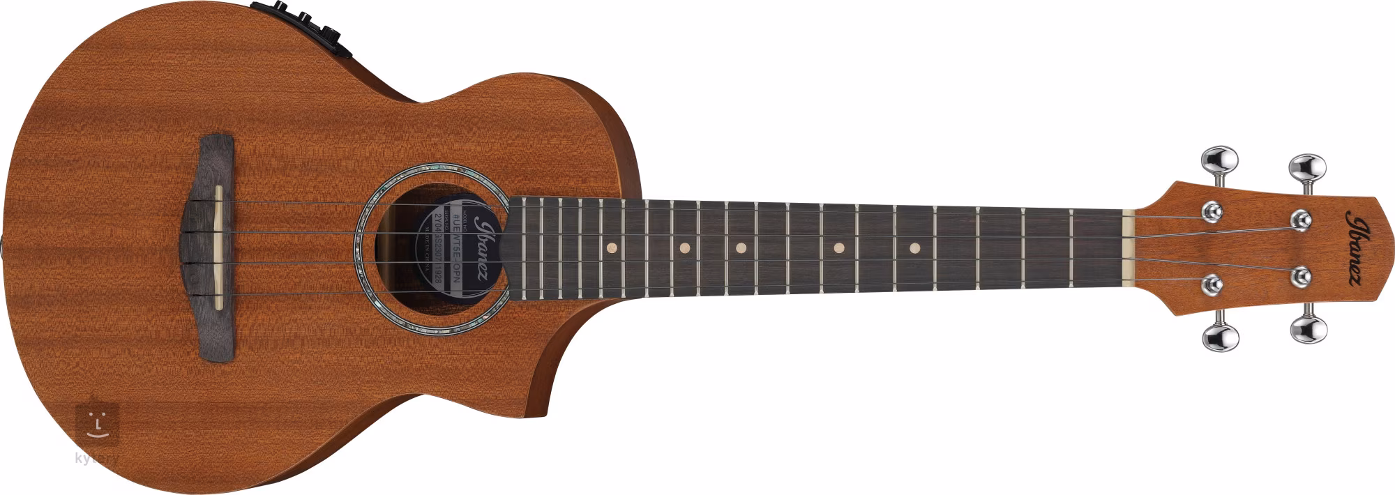 Der Korpus der Ibanez UEWT5E-OPN elektroakustischen Tenor-Ukulele ist aus laminiertem Sapele gefertigt. Ein Griffbrett aus Purpurherz/Amarantholz mit neunzehn Bünden ist auf den Okoumé-Hals geklebt. Die Orientierung auf dem Griffbrett wird durch Positionspunkte aus Ahorn erleichtert. Die Saiten sind in den verchromten, gitarrenähnlichen Mechaniken und dem Griffbrett aus Purpleheart befestigt.