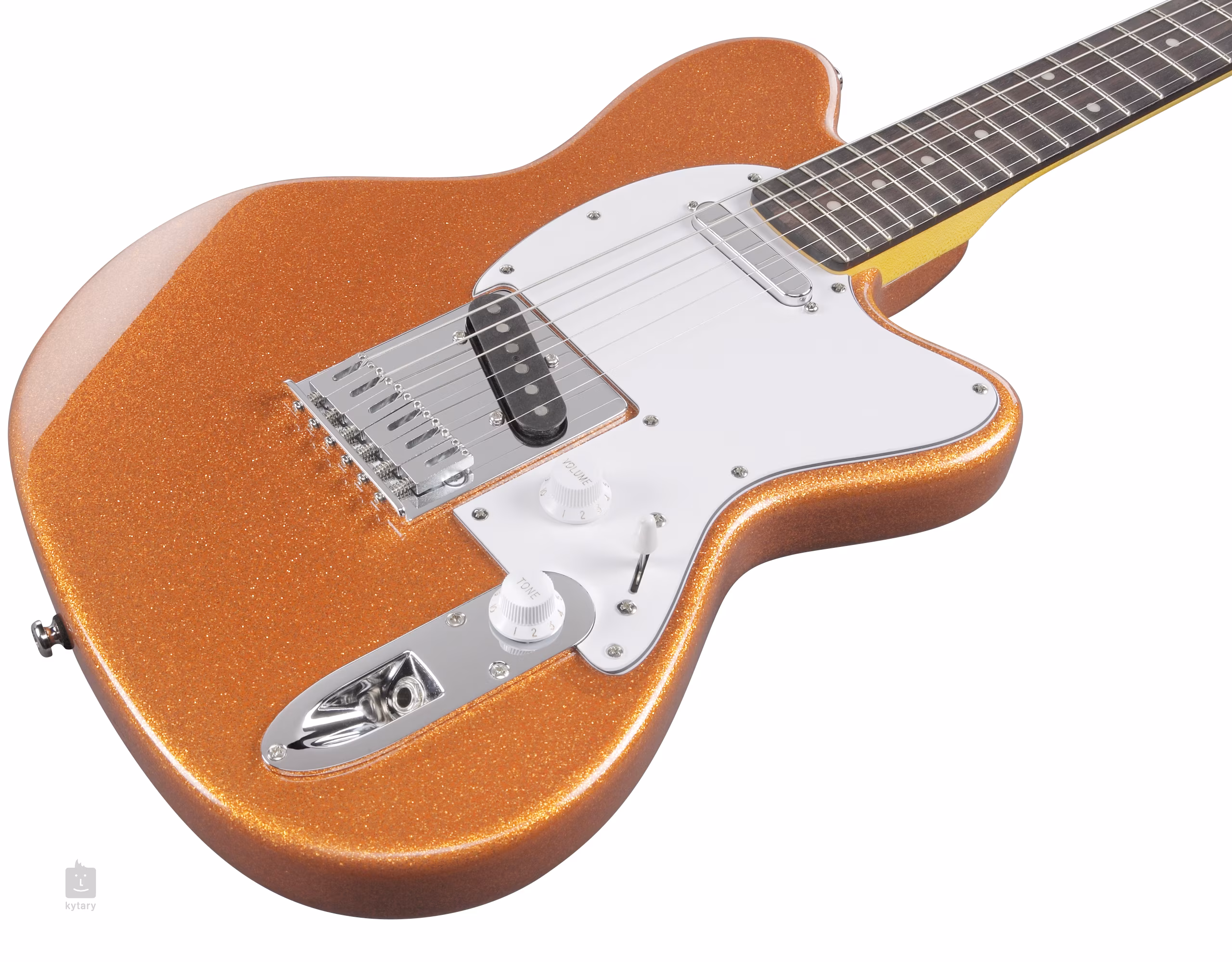 Zwei Seymour Duncan Alnico II Pro Single-Coil-Tonabnehmer verleihen der Gitarre einen Vintage-Sound und ein Spielgefühl mit einer wunderbar warmen Höhenansprache. Der Klangcharakter lässt sich serienmäßig mit den Potentiometern für Lautstärke und Klangfarbe sowie einem dreistufigen Tonabnehmerschalter einstellen. Stimmstabilität und schnelle Saitenwechsel werden durch die Verankerung der Saiten in Gotoh Locking Mechanismen und den Gotoh GTC202 Saitenhalter mit sechs separaten Sätteln garantiert. Der stilvolle Look der Gitarre wird durch das Orange Cream Sparkle Korpusfinish und die verchromte Hardware unterstrichen.