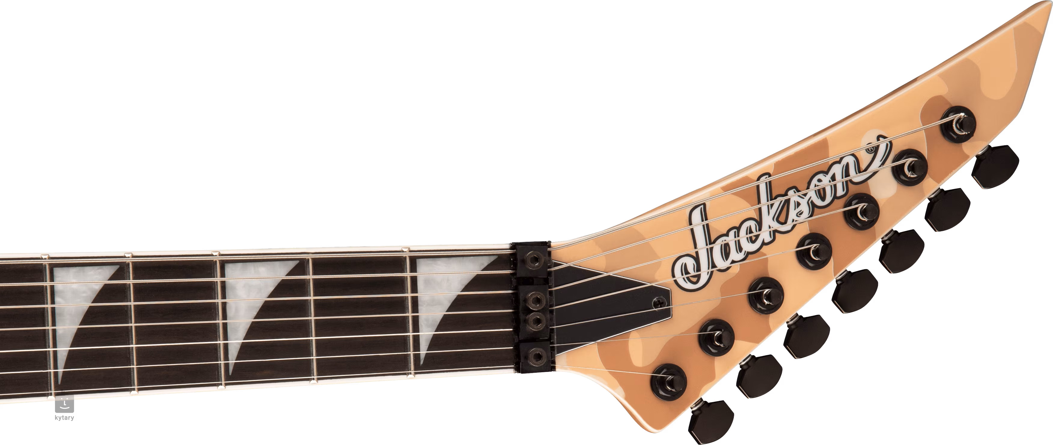 Die Saiten sind in Gotoh-Stimmmechaniken und einem Floyd Rose Original Double-Turn-Tremolo untergebracht, mit dem Sie Ihrem Spiel beeindruckende Klangeffekte verleihen können. Zusätzlich zu den Sperren am Nullbund trägt die längere Mensur von 673 mm zur Stimmstabilität bei, und Sie werden die Dunlop-Rollen mit der Option von doppelt sperrbaren Gurtknöpfen zu schätzen wissen. Der stilvolle Look der Gitarre wird durch das Camouflage-Finish und die schwarze Hardware noch unterstrichen.