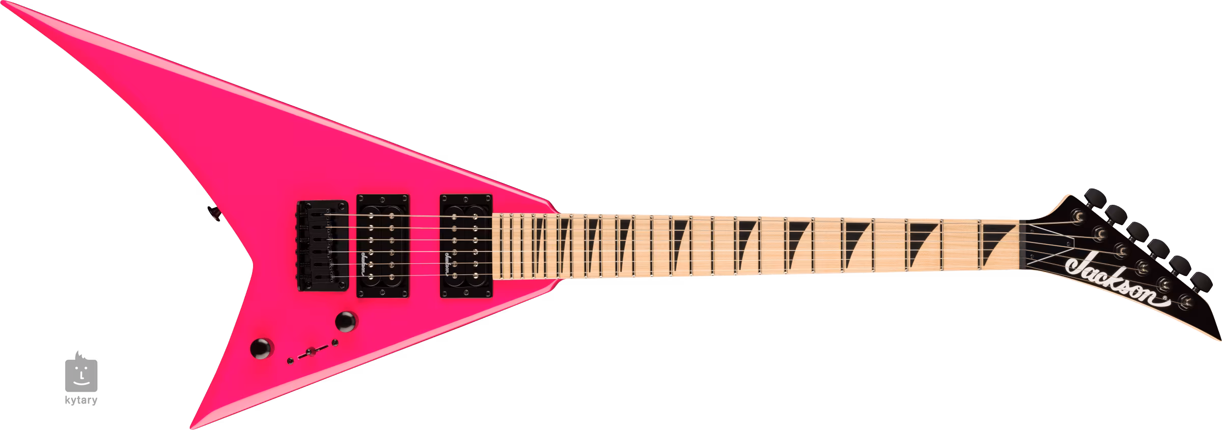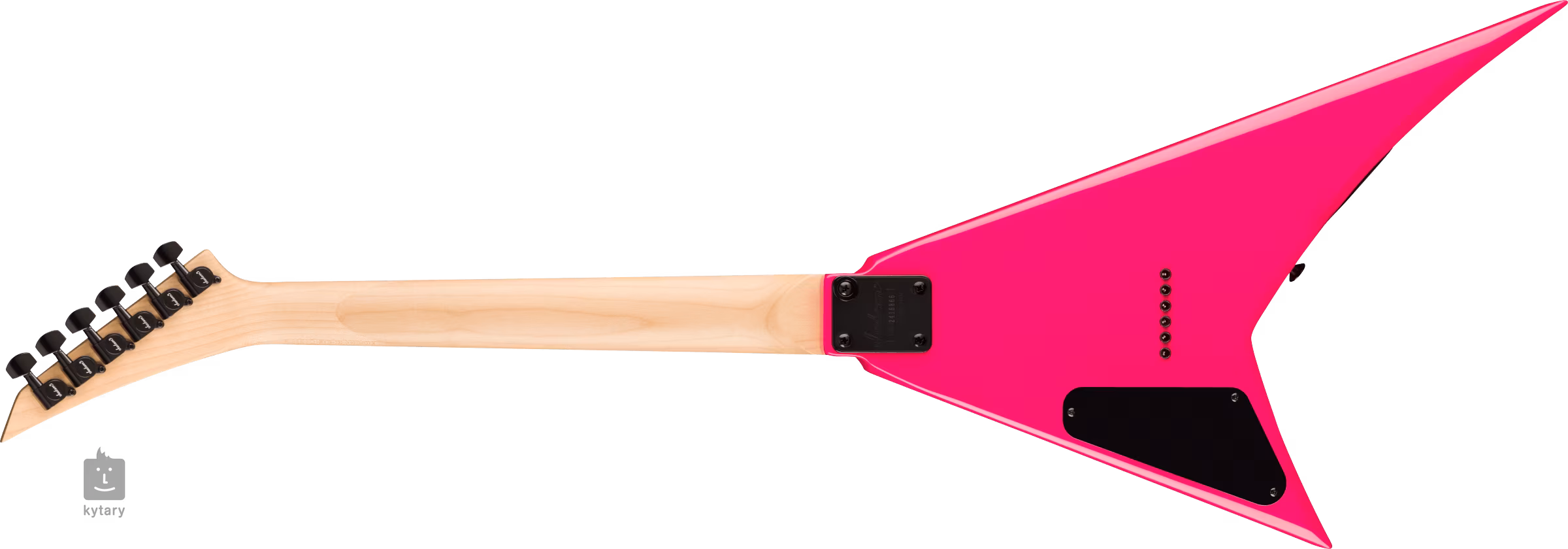 Der Korpus der JS1X RR Minion Neon Pink ist aus Pappelholz gefertigt. Auf den verschraubten Ahornhals ist ein Ahorn-Griffbrett mit vierundzwanzig Jumbo-Bünden geklebt. Die Orientierung auf dem Griffbrett wird durch schwarze Sharkfin-Positionsmarker erleichtert.