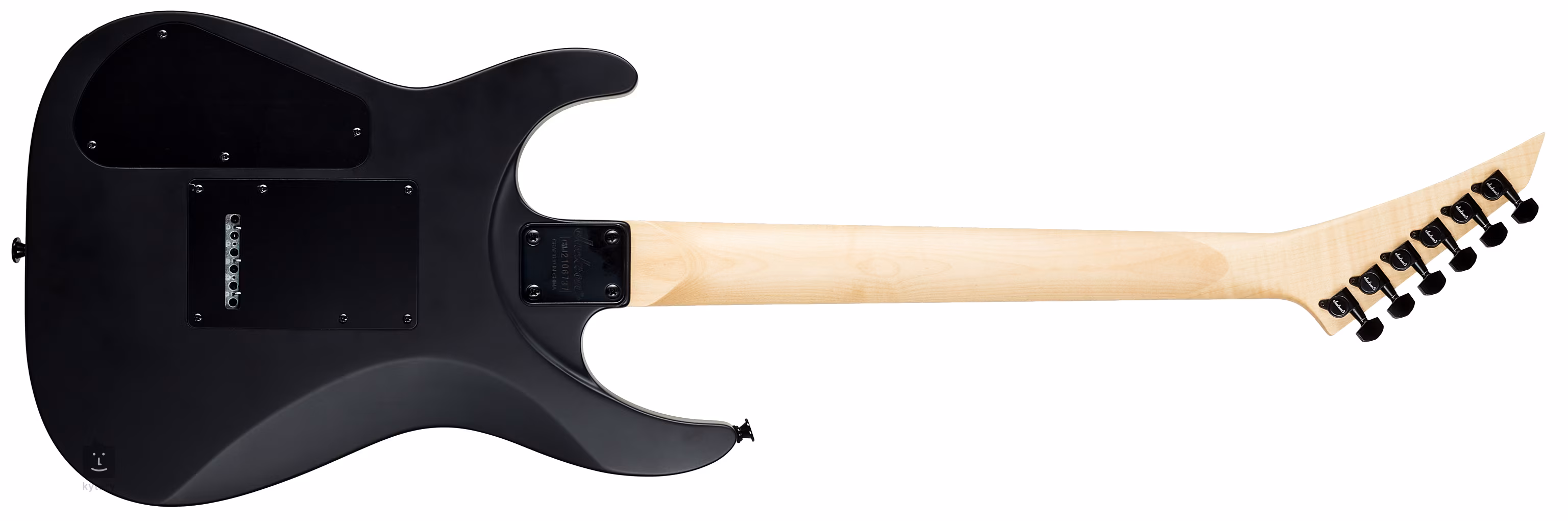 Zwei proprietäre Humbucker mit Keramikmagneten und einem hohen Ausgangssignal geben der Gitarre den saftigen Sound, der in der Metal- und Rockmusik so wichtig ist. Lautstärkepotentiometer, Tonregler und ein dreistufiger Tonabnehmerschalter dienen der Klanganpassung. Die Saiten werden in einem Single-Turn-Tremolo mit Zweipunktbefestigung und der die-cast-Mechanik des Unternehmens gehalten. Der stilvolle Look der Gitarre wird durch die Satin Black Korpusfarbe und die schwarze Hardware unterstrichen.