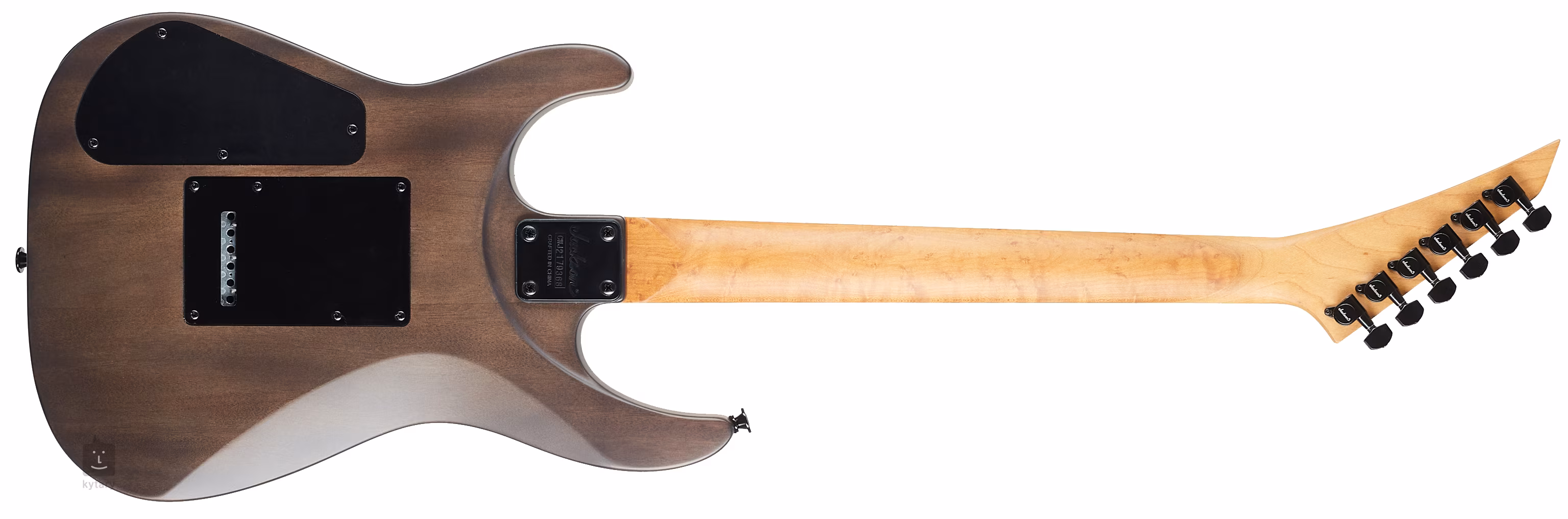 Zwei proprietäre Humbucker mit Keramikmagneten und einem hohen Ausgangssignal geben der Gitarre den saftigen Sound, der in der Metal- und Rockmusik so dringend benötigt wird. Lautstärkepotentiometer, Tonregler und ein dreistufiger Tonabnehmerschalter dienen der Klanganpassung. Die Saiten werden in einem synchronisierten Tremolo mit Zweipunktverankerung und den die-cast-Stimmmechaniken des Unternehmens gehalten.