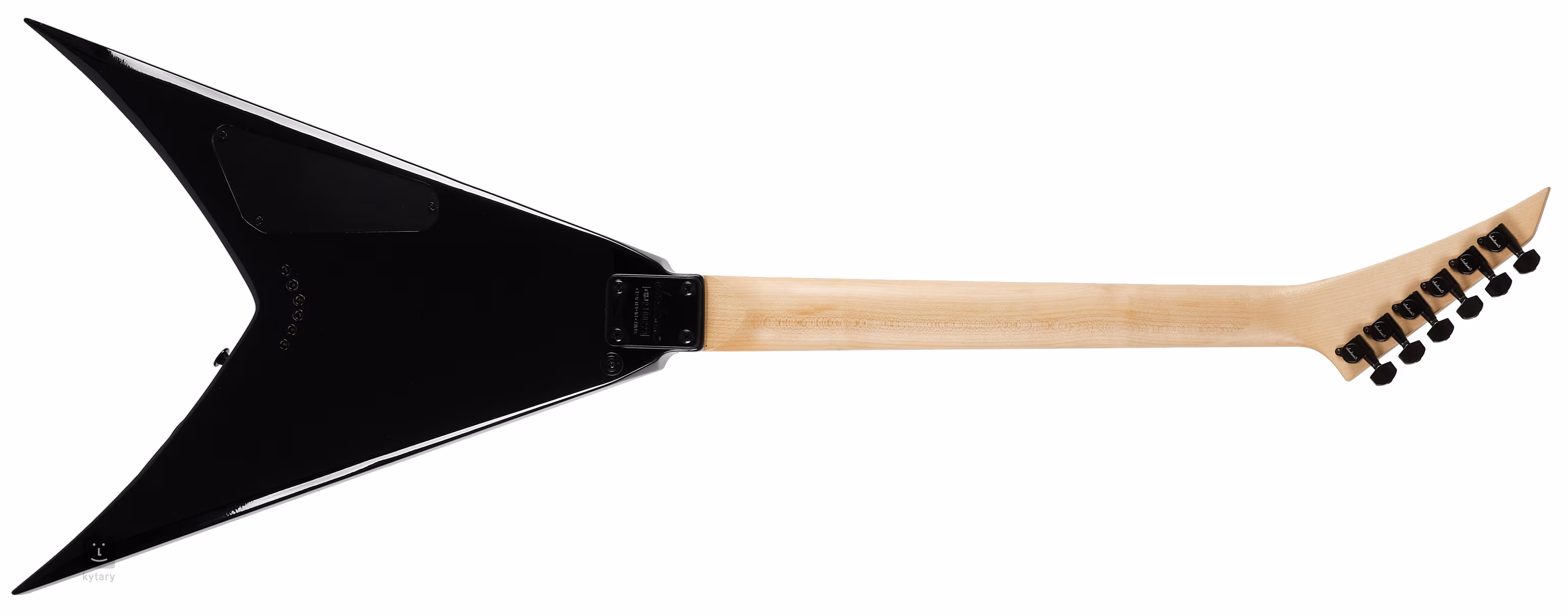 Der Korpus der E-Gitarre JS32T King V AMR BLK ist aus Pappel gefertigt. An den geschraubten Hals aus einem Stück Ahorn mit Graphitverstärkung ist ein Griffbrett aus Amaranthholz (Purpleheart) geklebt, das mit vierundzwanzig Jumbo-Bünden bestückt ist. Sein Radius verflacht zum Korpus hin – dies ermöglicht sowohl komfortables Riff-Spiel am Nullbund als auch komfortables, ultraschnelles Shredding in den höheren Lagen. Die Orientierung auf dem Griffbrett erleichtern Positionsmarkierungen aus Sharkfin-Imitat (Haifischflossen).