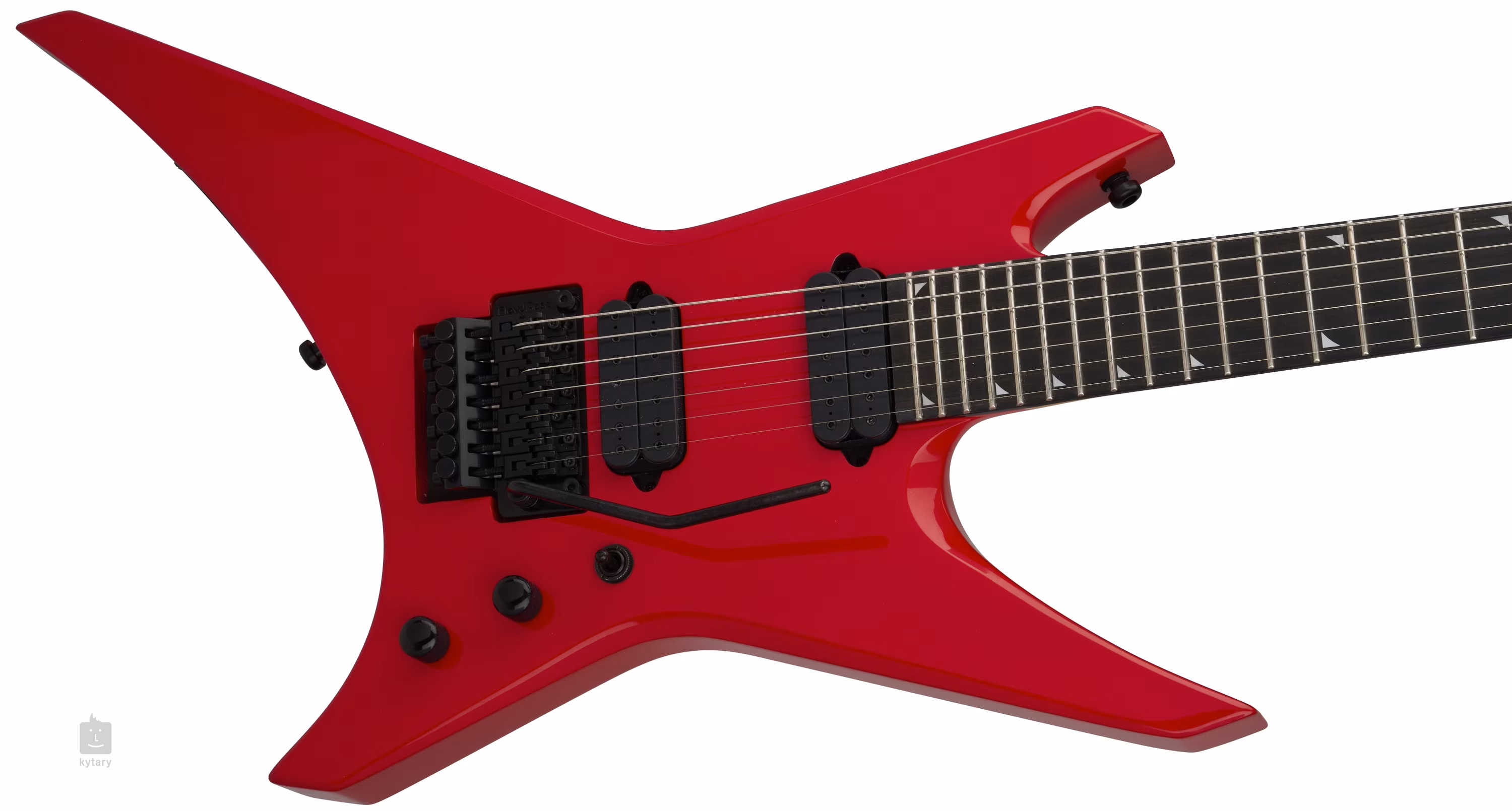 Die siebensaitige E-Gitarre Pro Dave Davidson Warrior WR7 EB FRR ist das Signature-Modell von Dave Davidson von der amerikanischen Metal-Band Revocation. Die Konstruktion der Gitarre besteht aus Nyatoholzflügeln und einem durchgefrästen Ahornhals mit Graphitbeleistung. Diese Konstruktion wirkt sich positiv auf das Sustain des Instruments aus. Das Ahorn-Griffbrett ist mit vierundzwanzig Jumbo-Bünden bestückt. Sein Radius flacht zum Korpus hin ab - das ermöglicht sowohl komfortables Riffspiel am Nullbund als auch bequemes ultraschnelles Shredden in höheren Lagen. Positionsmarkierungen wie piranha tooth (small sharkfin) machen es einfach, sich auf dem Griffbrett zurechtzufinden.