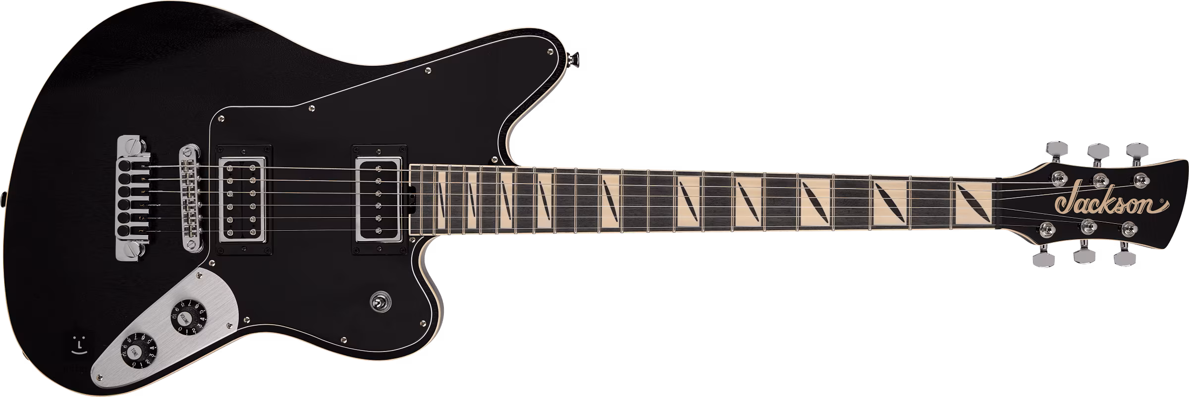 Zwei Custom Jackson Signature Pickups geben der Gitarre einen richtig fetten Sound für Heavy Riffing, und die Spulen des Humbuckers können gesplittet werden (Push/Pull-Funktion), um eine größere Bandbreite an Sounds aus der Gitarre herauszuholen. Eine stabile Stimmung wird durch die Befestigung der Saiten in den arretierbaren Druckguss-Laufwerken der Firma und durch den TOM-Style-Saitenhalter in einem verstellbaren Stringer gewährleistet.