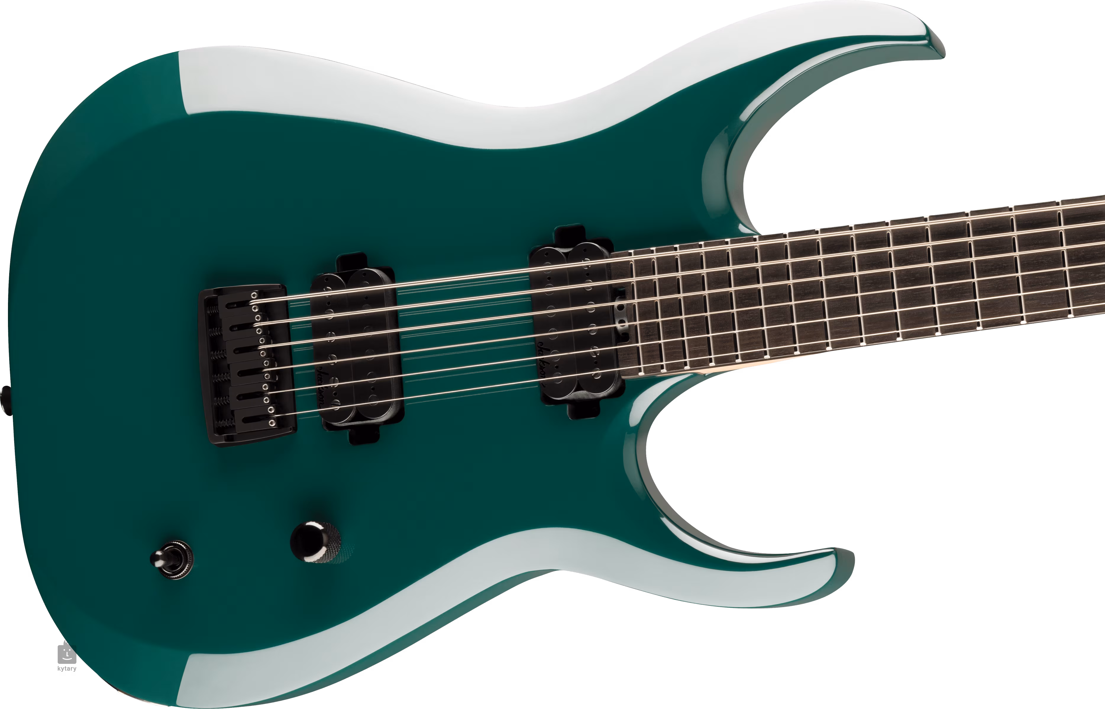 Die Gitarre wird von zwei Jackson Custom stimmenden RI1 Humbuckern beschallt. Eine stabile Stimmung wird durch die Saitenbefestigung in den arretierbaren Druckguss-Laufwerken der Firma und durch den Gotoh 510FX-6 Steg durch den Korpus gewährleistet.
