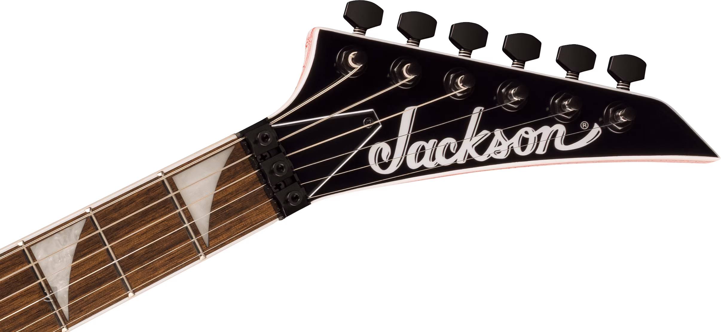 Die Konstruktion der Jackson X Series Soloist SLX DX Bloodshot Crackle besteht aus einem Korpus aus Nyatoholz und einem durchgefrästen Ahornhals, der mit Graphitbeleistung verstärkt ist. Diese Konstruktion wirkt sich positiv auf das Sustain des Instruments aus. Das Feigenholz-Griffbrett ist mit vierundzwanzig Jumbo-Bünden bestückt. Sein Radius flacht zum Korpus hin ab - das ermöglicht sowohl komfortables Riffspiel am Nullbund als auch bequemes, ultraschnelles Shredden in höheren Lagen. Positionsmarkierungen aus Sharkfin-Pearl-Imitat erleichtern die Orientierung auf dem Griffbrett.
