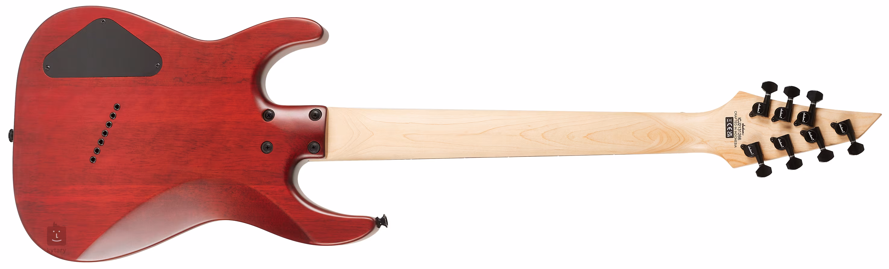 Zwei proprietäre High-Output-Humbucker verleihen der Gitarre einen saftigen Sound und eine klare Artikulation auch in tiefen Lagen, um den Sound von Core-, Djent- oder Metal-Riffs und Breakdowns zu erreichen. Lautstärkepotentiometer, Tonregler und ein dreistufiger Tonabnehmerschalter dienen der Klanganpassung. Stimmstabilität und gute Intonation werden durch die Befestigung der Saiten in den hauseigenen Stimmmechaniken und sechs separaten Robiniensätteln mit Verankerung im Korpus gewährleistet. Der stilvolle Look der Gitarre wird durch das Stained Mahogany-Finish und die schwarze Hardware unterstrichen.