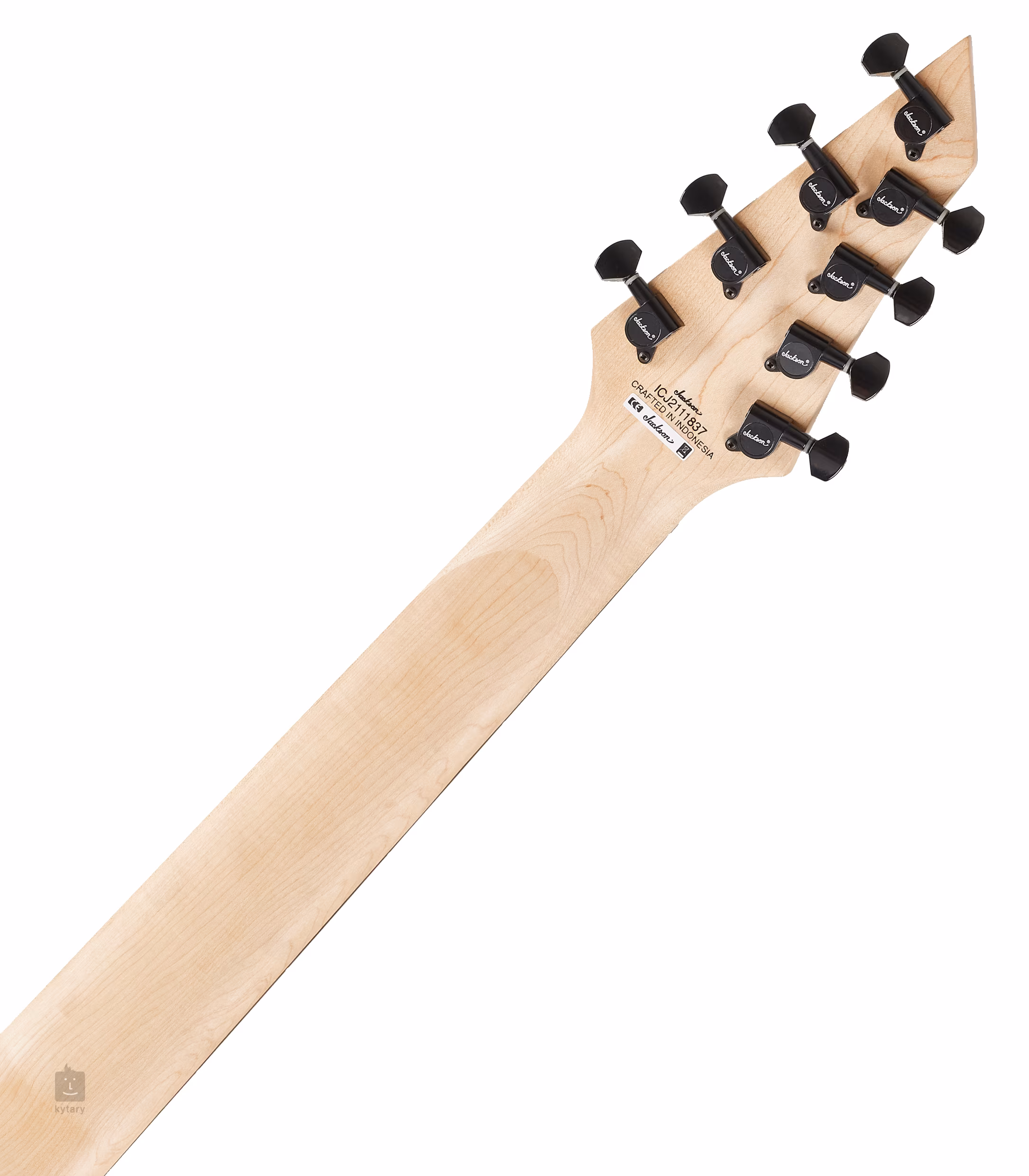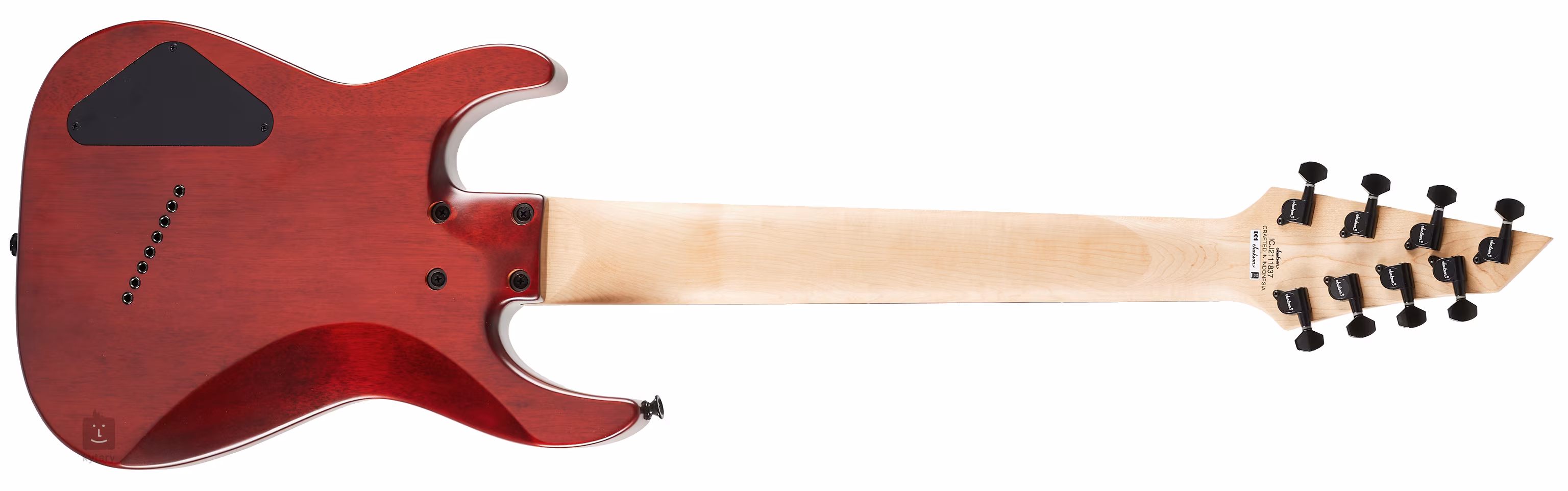 Zwei proprietäre High-Output-Humbucker verleihen der Gitarre einen saftigen Sound und eine klare Artikulation auch in tiefen Lagen, um den Sound von Core-, Djent- oder Metal-Riffs und Breakdowns zu erreichen. Lautstärkepotentiometer, Tonregler und ein dreistufiger Tonabnehmerschalter dienen der Klanganpassung. Stimmstabilität und gute Intonation werden durch die Befestigung der Saiten in den hauseigenen Stimmmechaniken und sechs separaten Robiniensätteln mit Verankerung im Korpus gewährleistet. Der stilvolle Look der Gitarre wird durch das Stained Mahogany Korpus-Finish und die schwarze Hardware noch unterstrichen.