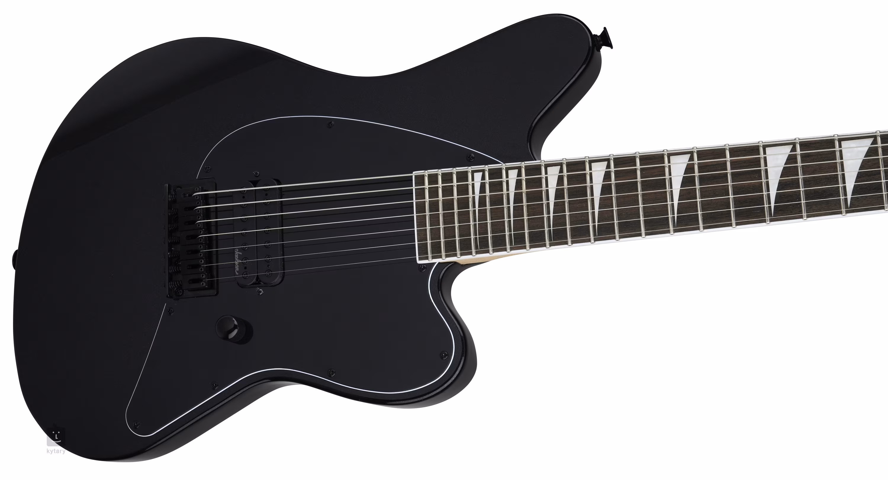 Die X-Serie der amerikanischen Marke Jackson ist eine Mittelklasse-Serie von E-Gitarren mit dem typischen Design des Unternehmens und hervorragenden Spieleigenschaften, die zu einem relativ günstigen Preis erhältlich sind. Insbesondere die Surfcaster-Modelle bieten ein Retro-Offset-Korpusdesign, das in den 90er Jahren der Musiköffentlichkeit vorgestellt wurde. Der Pappelkorpus der siebensaitigen Gitarre X Series Surfcaster HT7 LRL BK ist mit einer glänzenden Metallic-Lackierung versehen. An den verschraubten Ahornhals, der mit Graphitverstärkung versehen ist, ist ein Griffbrett aus Feigenholz mit 24 Jumbo-Bünden geklebt. Sein Radius flacht zum Korpus hin ab und ermöglicht so sowohl komfortables Spielen von Riffs am Nullbund als auch komfortables, ultraschnelles Shredding in höheren Lagen. Die Orientierung auf dem Griffbrett erleichtern Positionsmarkierungen aus Perlmuttimitat im Sharkfin-Design (Haifischflosse). Der firmeneigene Humbucker mit hohem Ausgangssignal verleiht der Gitarre einen vollen, aggressiven Klang, der sich besonders bei schweren Power-Akkorden, schnellen, phrasierten Gitarrenriffs und Soli im Hard- und Heavy-Stil auszeichnet. Die firmeneigenen Die-Cast-Mechaniken und der String-Through-Steg sorgen für eine stabile Stimmung. Die stilvolle Verarbeitung wird durch ein schwarzes Schlagbrett unterstrichen. Die E-Gitarren der amerikanischen Marke Jackson sprechen seit mehreren Jahrzehnten vor allem Musiker aus Metal-, Metalcore-, HC- oder Djent-Bands an, die einen lauten Sound mit mehr oder weniger aggressiven Elementen bevorzugen, was auch die Liste der firmeneigenen Musiker belegt.