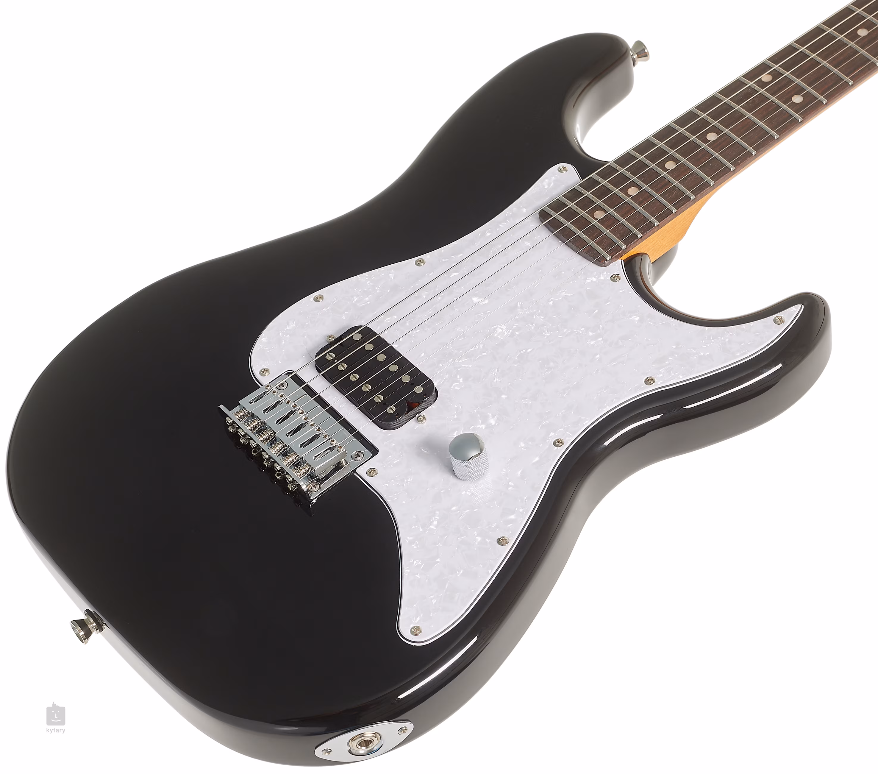 Die JET JS-400 HT BK ist eine preisgünstige E-Gitarre in modifiziertem und vereinfachtem Double-Cut-ST-Design mit festem Steg und Steg-Humbucker. Das ideale Instrument für angehende Musiker, die kompromisslos und ohne Schnörkel geradlinige Musik „rockig“ spielen wollen. Der Korpus der Gitarre ist aus gerösteter Pappel (roasted poplar) gefertigt. Der verschraubte Hals aus kanadischem Ahorn ist mit einem Palisandergriffbrett mit 22 Bünden versehen. Der Hals wurde vor der Montage einer Wärmebehandlung unterzogen, wodurch das Holz stabiler wird und gleichzeitig das Aussehen/die Ausstrahlung von seit Jahren gespielten Hälsen/Griffbrettern erhält. Der volle, dichte Klang des Humbuckers mit Keramikmagneten kann mit dem Lautstärkeregler eingestellt werden. Die Saiten sind in den firmeneigenen verchromten Stimmmechaniken und über den festen Steg durch den Korpus befestigt. Das stilvolle Aussehen der Gitarre wird durch ein Pickguard aus Perlmuttimitat unterstrichen. Die relativ neue Marke Jet Guitars bietet preisgünstige E-Gitarren in traditionellen Designs, Farben und Lackierungen an.