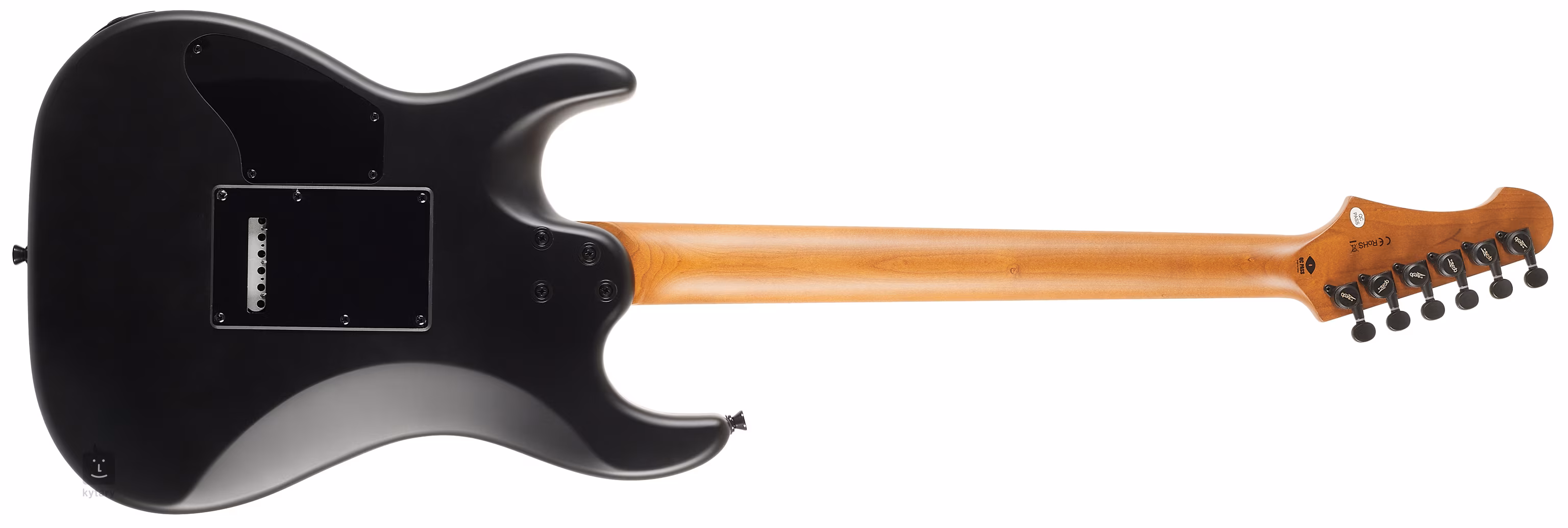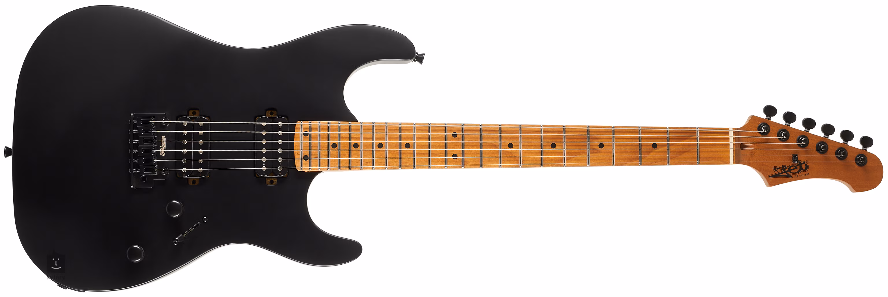 Die Jet JS-500 E-Gitarren vereinen Elemente der klassischen ST- und der moderneren Super ST-Gitarren. Der Korpus der JS-500 MBK ist aus geröstetem Pappelholz gefertigt. Ein Griffbrett aus geröstetem Ahorn mit vierundzwanzig Bünden ist auf einen geschraubten Hals aus kanadischem Ahorn mit einem komfortablen Modern "C"-Profil geklebt. Durch die Wärmebehandlung wird das Holz der Gitarre stabiler, und das Ahorn-Griffbrett erhält ein angenehm goldenes Aussehen.