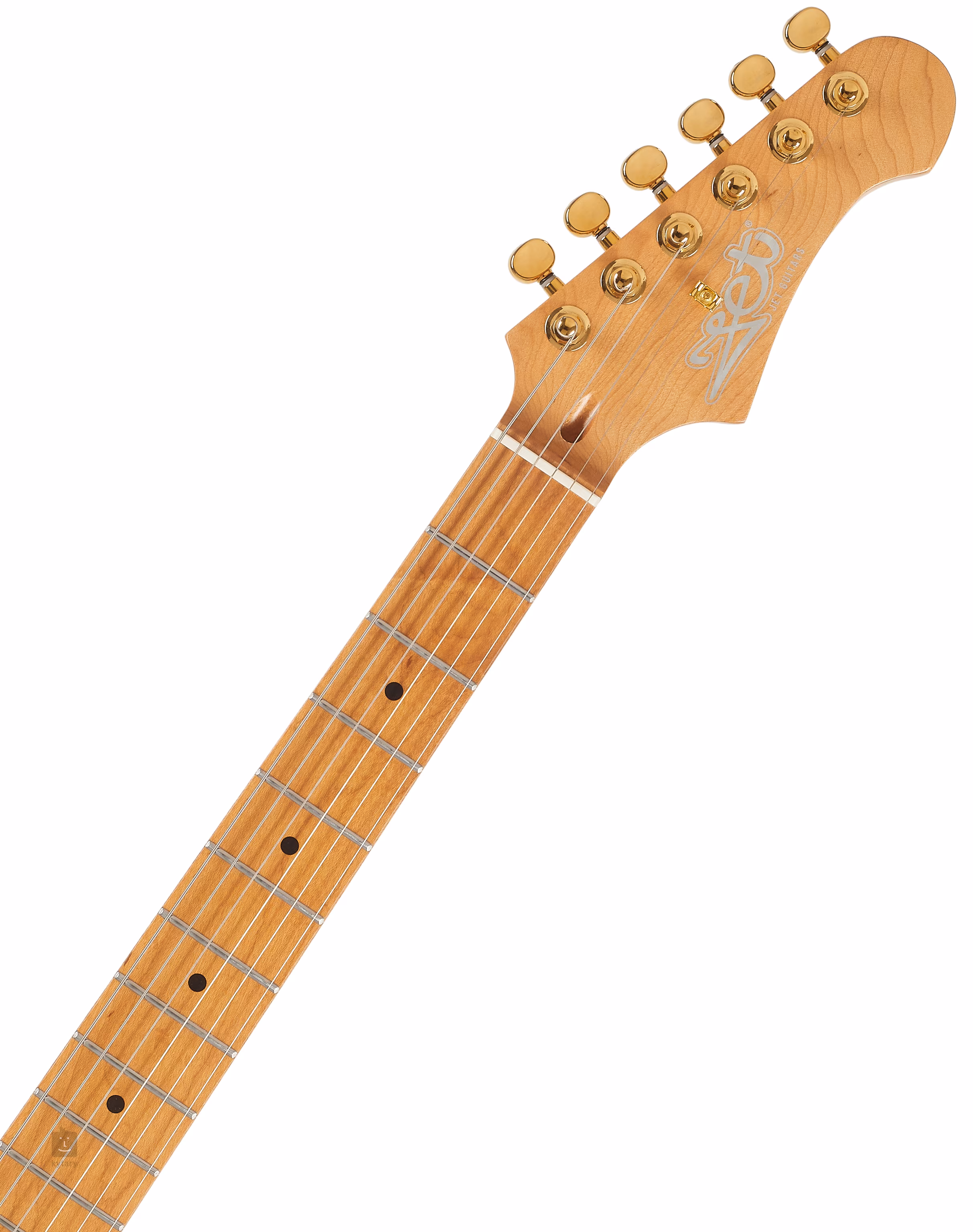 Die Jet JS-700 MBK E-Gitarre ist ein moderneres ST/Super ST Modell. Der Korpus der Gitarre ist aus Linde gefertigt. Der angeschraubte Hals und das Griffbrett aus kanadischem Ahorn wurden vor dem Zusammenbau wärmebehandelt, was das Holz stabiler macht und ihm das Aussehen/Aura eines jahrelang gespielten Halses/Griffbretts verleiht.
