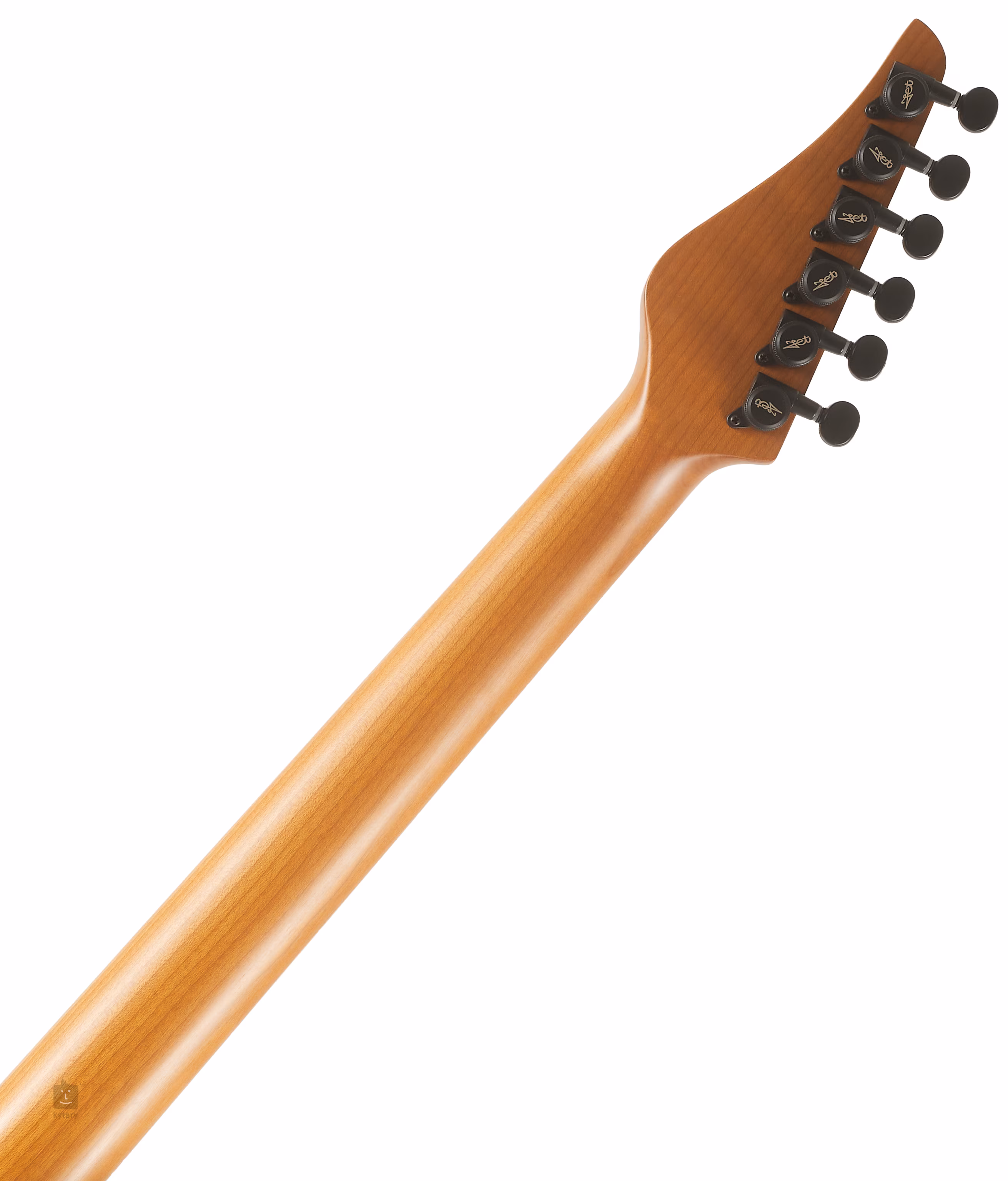 Die Jet JS-700 SJB E-Gitarre ist ein moderneres ST/Super ST Modell. Der Korpus der Gitarre ist aus Erle gefertigt. Ein Palisandergriffbrett mit zweiundzwanzig Bünden ist auf einen gerösteten Ahornhals geklebt. Positionspunkte auf dem Griffbrett erleichtern die Orientierung.