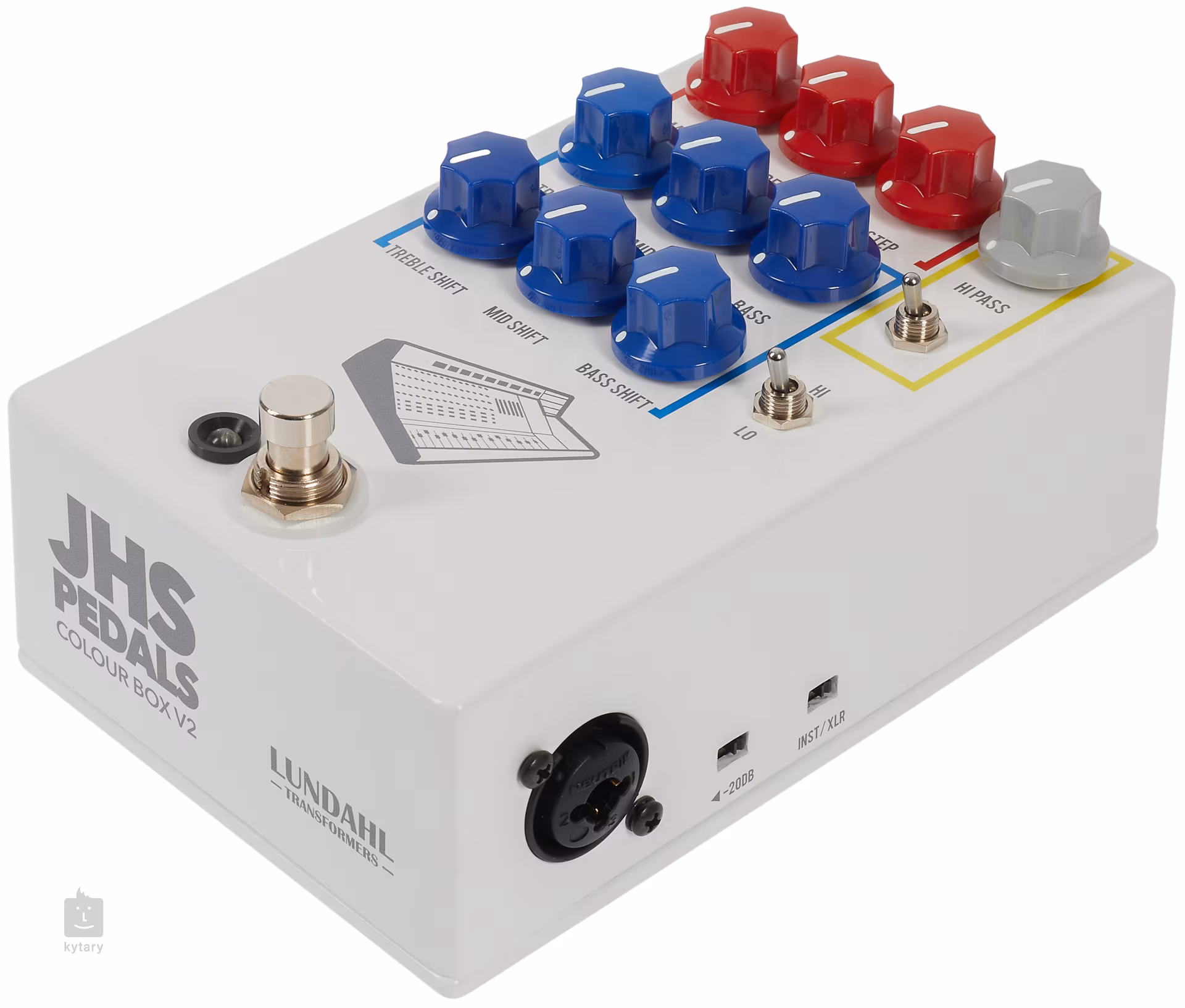 Die Colour Box V2 der amerikanischen Firma JHS Pedals ist eine vielseitige Preamp/EQ/Overdrive/Distortion/Fuzz/DI Box, die den Sound einer E-Gitarre, die direkt an ein Studiomodul angeschlossen wird, originalgetreu emuliert, ohne eine Gitarre zu benutzen. Inspiriert wurde die Colour Box von Musikern wie den Beatles, Spoon, Wilco, Steely Dan und vielen anderen, die diese Technik bei ihren legendären Aufnahmen verwendet und verewigt haben.