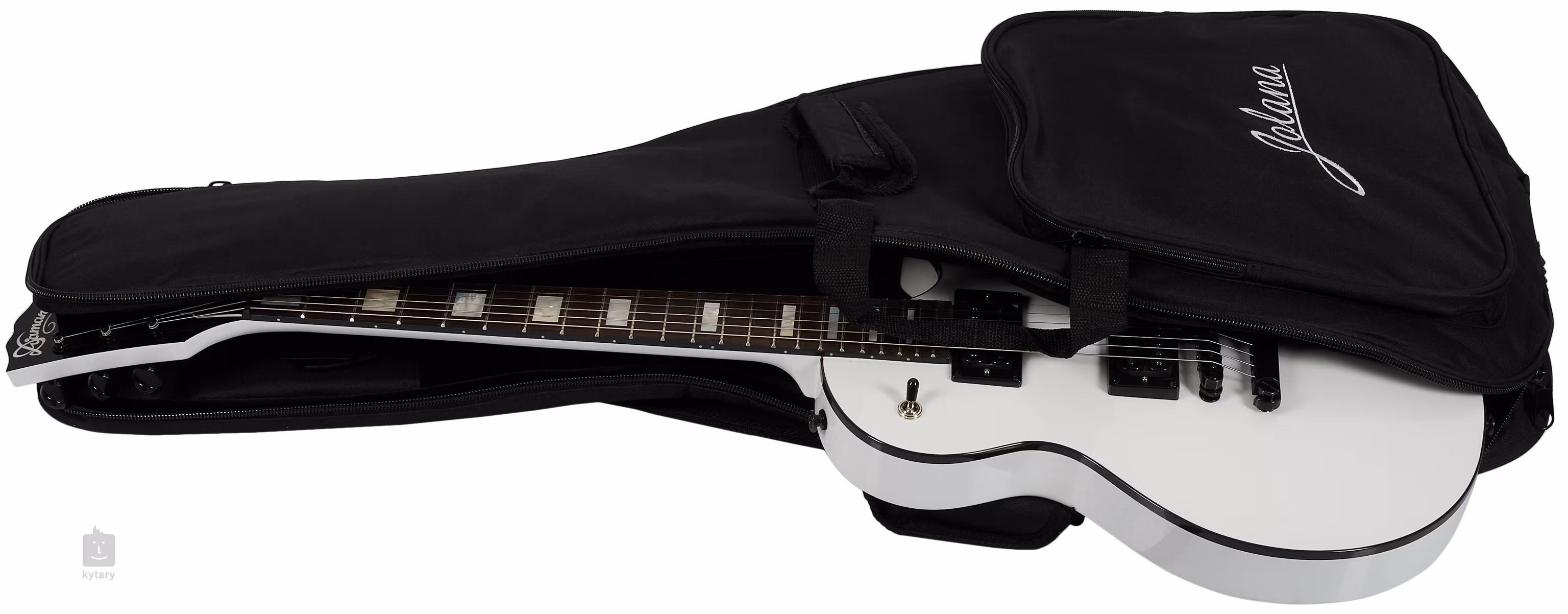 Zwei Humbucker der renommierten deutschen Marke Amber Pickups kümmern sich um das Soundsystem des Instruments. Mit den Reglern für Lautstärke und Ton sowie dem dreistufigen Pickup-Schalter lässt sich der Klangcharakter einstellen. Die Saiten sind in Gotoh-Mechaniken eingespannt und durch den TOM-Steg in einem Saitenstimmgerät (Gotoh GE101Z). Das stilvolle Finish wird durch das schwarze Body Binding und die schwarze Hardware akzentuiert.