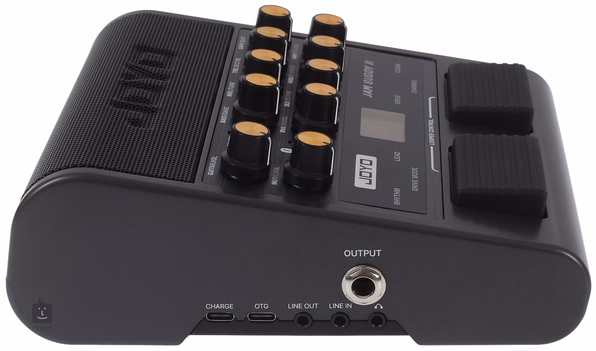 Der Jam Buddy II von Joyo ist ein ultrakompakter Gitarren-Modeling-Combo im Pedalboard-Format, der sich hervorragend zum Üben zu Hause, zum leisen Spielen mit Kopfhörern oder zum Jammen mit jeglicher Musikbegleitung eignet. Der Combo ist mit zwei 8-W-Lautsprechern für eine originalgetreue Klangwiedergabe ausgestattet. Er verfügt über insgesamt drei Kanäle Clean, Rhythm und Lead für einen cleanen, leicht verzerrten oder aggressiven Highsound. Alle Blueser, Rocker und Metalheads werden daran ihre Freude haben. Der Combo ist außerdem mit 14 Simulationen legendärer Gitarrenverstärker ausgestattet, die eine Vielzahl zusätzlicher Klangfärbungen bieten.
