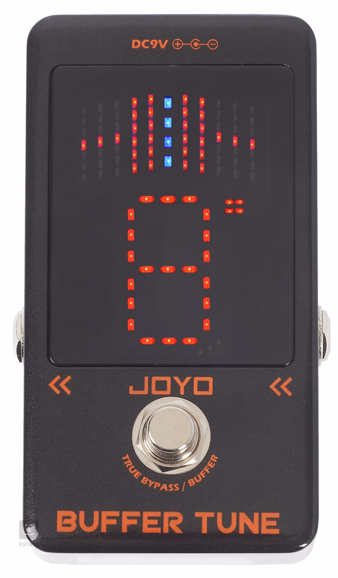 Das Joyo JF-19 Pedalstimmgerät mit integriertem Puffer ermöglicht nicht nur ein präzises und schnelles Stimmen, sondern Sie werden es auch zu schätzen wissen, wenn das Gitarrensignal durch eine lange Effektkette voller Kabel und Pedale läuft. Dann müssen Sie das verloren gegangene Signal wieder auf Vordermann bringen und dem Ton seinen ursprünglichen Glanz und seine Integrität zurückgeben. Das ist die Aufgabe des Buffers. Mit dem Stimmgerät selbst können Sie eine normale Gitarre, eine siebensaitige Gitarre und einen Bass stimmen. Es bietet eine hohe Stimmgenauigkeit von +/-1 Cent und eine klare LED-Anzeige, die auch in einem abgedunkelten Rig gut lesbar ist. Das Stimmgerät bietet wählbare True-Bypass- und True-Buffer-Modi. Die Stromversorgung erfolgt über einen 9V-Adapter.