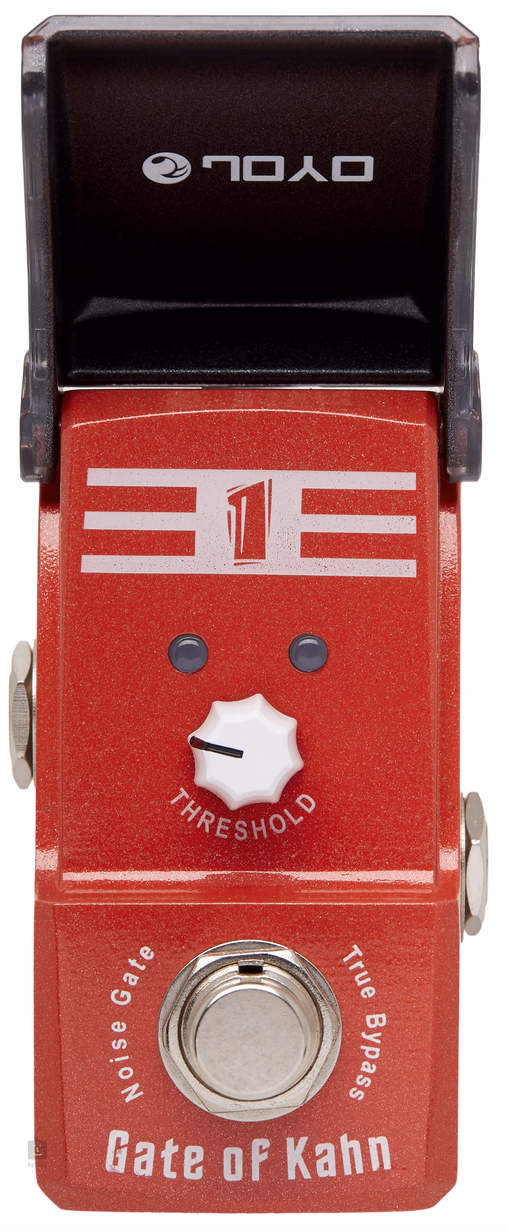 Das Joyo JF-324 Gate of Kahn ist ein Miniatur-Noise-Gate mit maximalem Bedienungskomfort aus dem Hause Joyo. Die Box beseitigt ein für alle Mal die lästigen Rückkopplungen in den Registern oder, was noch peinlicher ist, am Ende von Songs, und beeinflusst den Gitarrensound nur minimal. Das Pedal arbeitet im True-Bypass-Modus, hat also im ausgeschalteten Zustand keinerlei Auswirkungen auf das Durchschleifsignal. Die Stromversorgung erfolgt über einen 9V-Adapter.