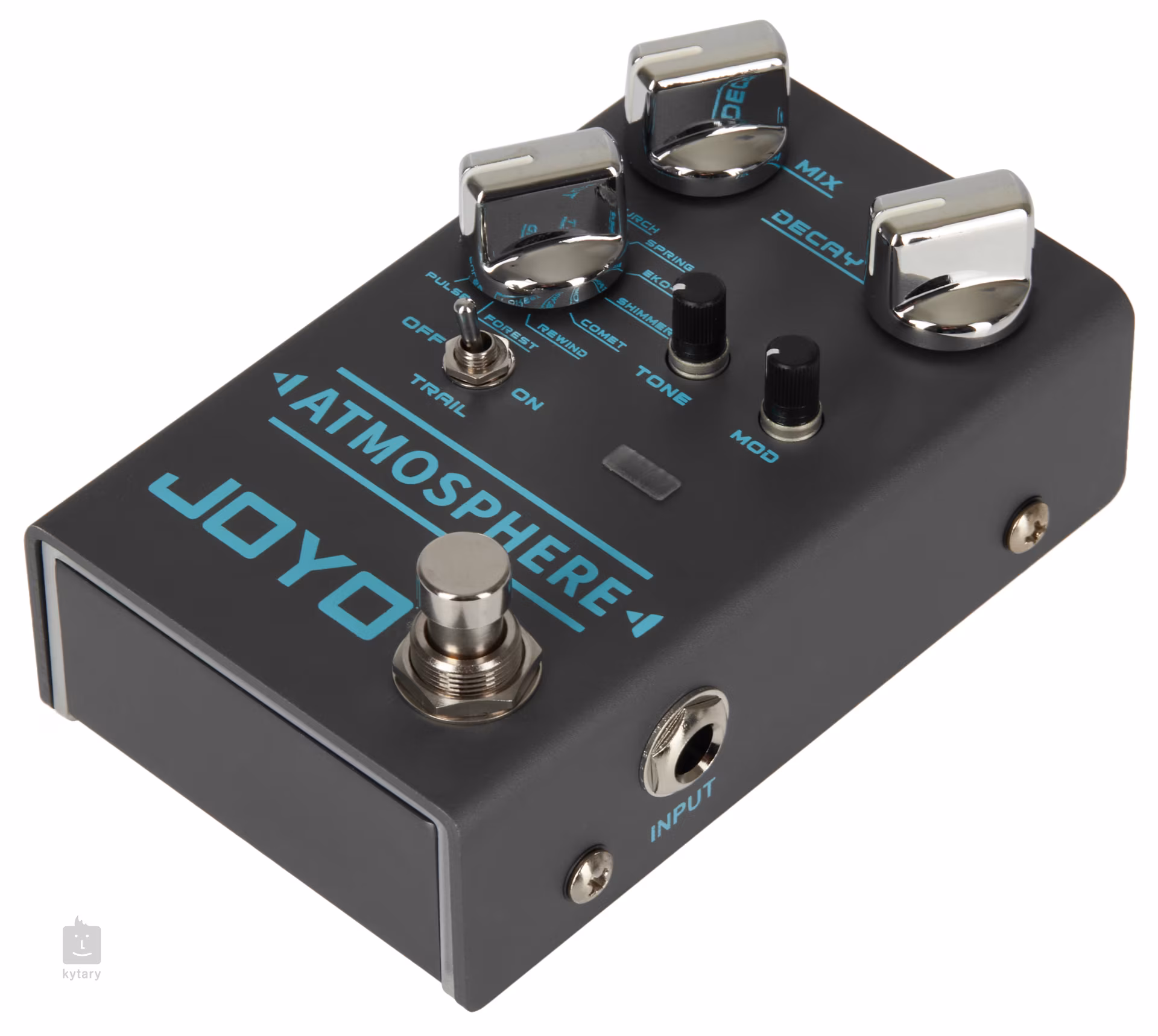 (Spring, Church, Plate, Shimmer) als auch weniger verbreitete (Comet, Pulse, Forest). Die Standard-Pedalregler (Mix, Decay, Tone) werden durch einen Mod/Depth-Regler für Modulationseffekte ergänzt. Die nützliche Trail-Funktion/der Schalter ermöglicht einen natürlichen Nachhall des Tons beim Umschalten in den Bypass-Modus oder seine sofortige Dämpfung (je nach Einstellung).