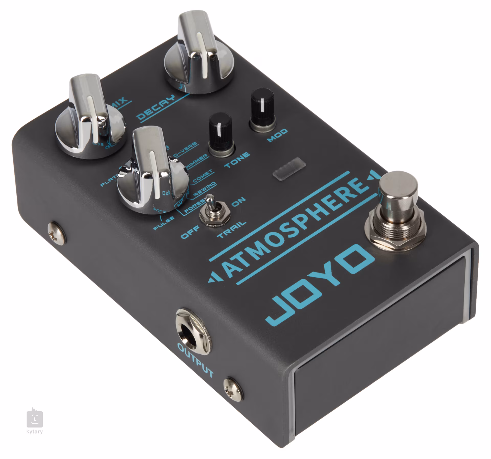 (Spring, Church, Plate, Shimmer) als auch weniger verbreitete (Comet, Pulse, Forest). Die Standard-Pedalregler (Mix, Decay, Tone) werden durch einen Mod/Depth-Regler für Modulationseffekte ergänzt. Die nützliche Trail-Funktion/der Schalter ermöglicht einen natürlichen Nachhall des Tons beim Umschalten in den Bypass-Modus oder seine sofortige Dämpfung (je nach Einstellung).