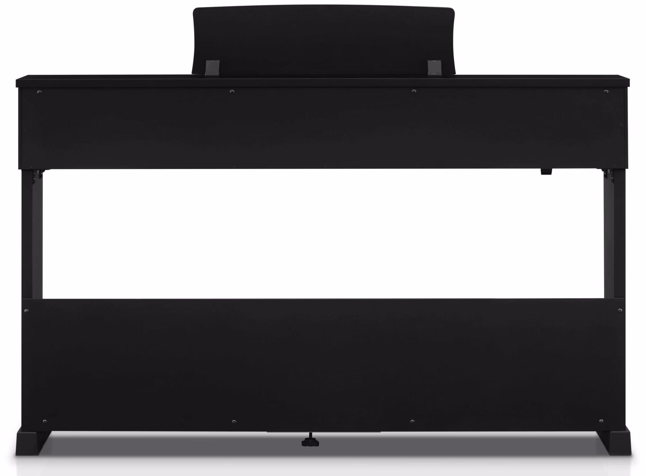Das schlanke und kompakte Gehäuse mit einer Tiefe von knapp über 40 cm passt auch in kleinere Räume und bietet Stabilität und praktische Details wie einen breiten Notenständer oder eine ausziehbare Tastaturabdeckung.