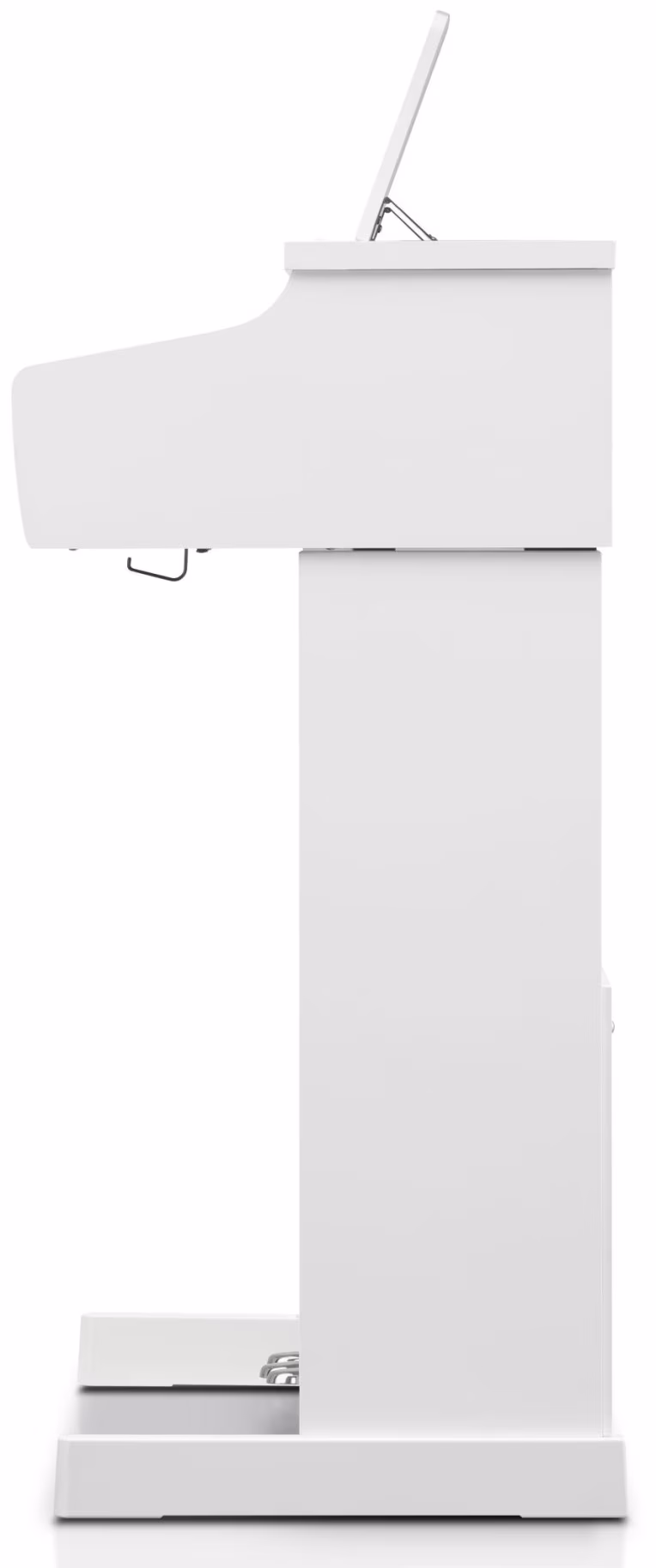 Das schlanke und kompakte Gehäuse des Instruments mit einer Tiefe von nur etwas mehr als 40 cm passt auch in kleinere Räume und bietet Stabilität und praktische Details wie einen breiten Notenständer oder eine ausziehbare Tastaturabdeckung.