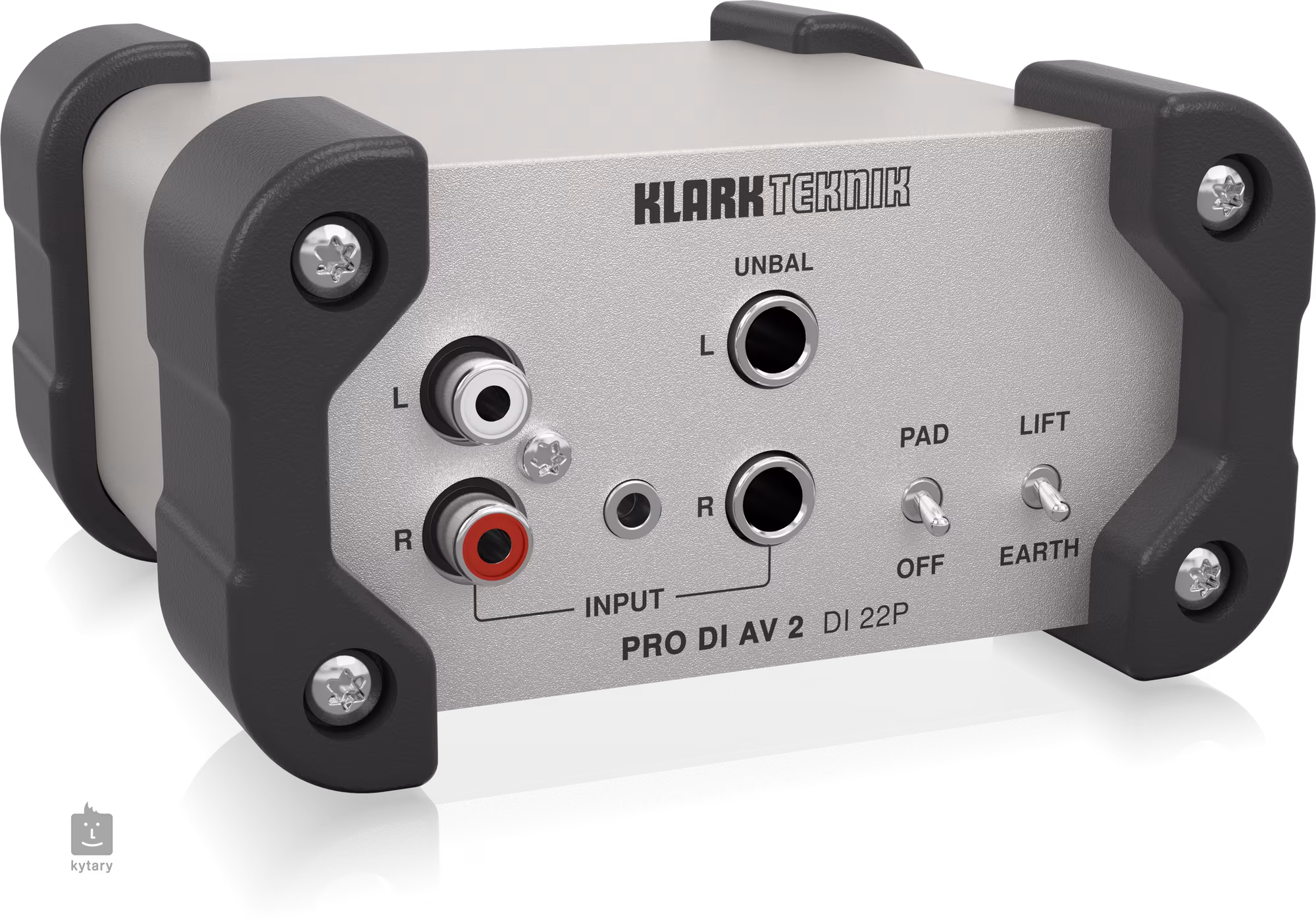 KLARK TEKNIK DI 22P ist eine passive Stereo-DI-Box mit 2x 6,3 mm TS-Klinkenbuchse, 3,5 mm TRS-Klinkenbuchse, Cinch- und zwei XLR-Ausgängen, schaltbarer Eingangsdämpfung für Instrumente/Geräte mit Instrumenten-, Line- und Lautsprechersignalpegel, Midas-Transformatoren für maximale Signalintegrität, schaltbarer Erdung und Aluminiumgehäuse.