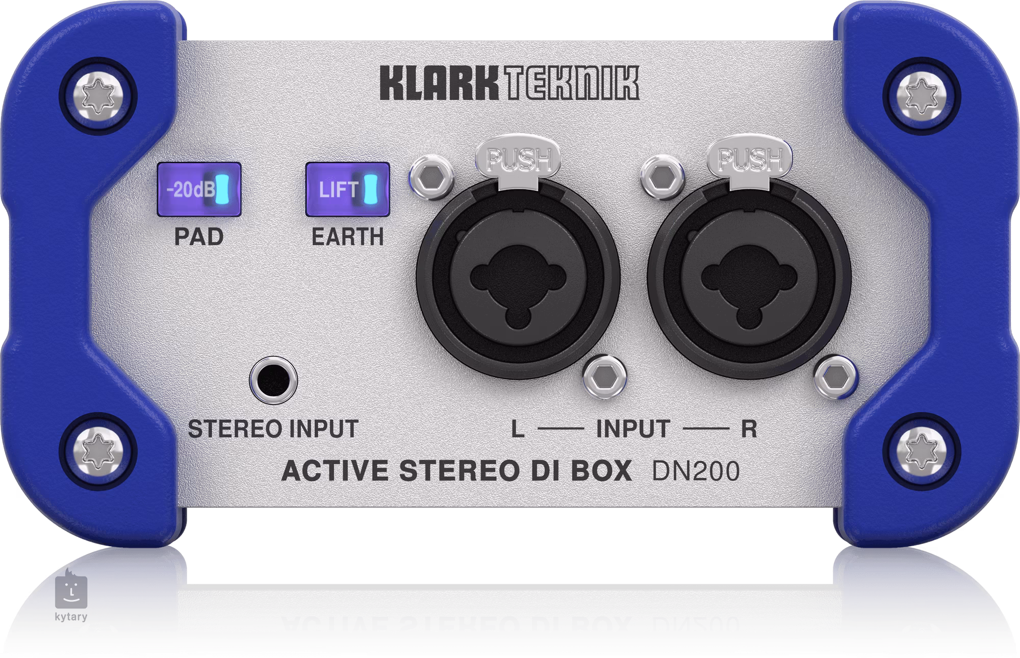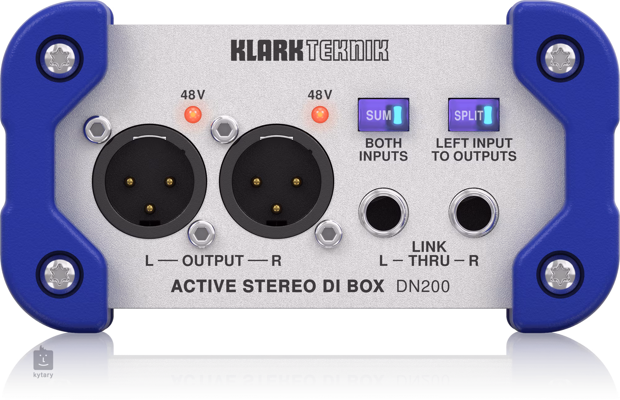 Die KLARK TEKNIK DN200 V2 ist eine zweikanalige aktive DI-Box mit 48V-Phantomspeisung, Eingängen (2x Combo XLR/Klinke 6,3 mm, Klinke 3,5 mm TRS Stereo Input), Ausgängen 2x XLR, 2x Klinke 6,3 mm TRS (Link Thru), wählbarer Dämpfung (-20 dB), schaltbarer Erdung und Schaltern Sum (sendet Signal von beiden Eingängen zu beiden Ausgängen) und Split (sendet Signal vom linken Eingang zu beiden Ausgängen).